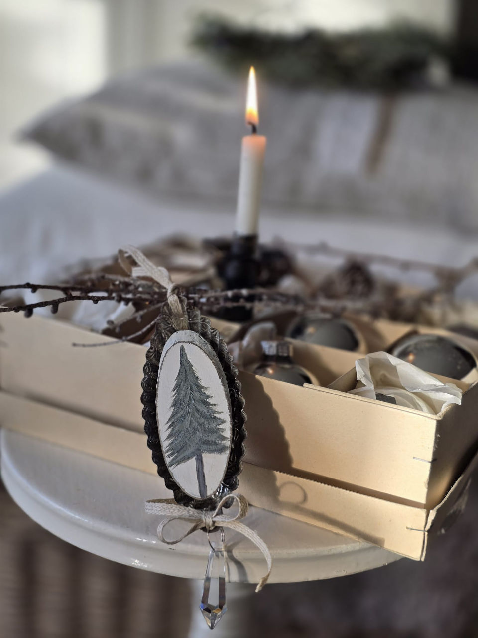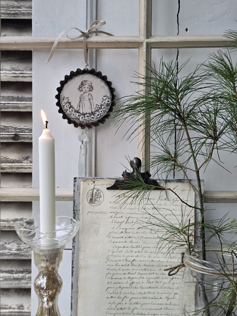 Wie auch bei den Windlichtern oder Windlichtbildern, sowie bei den Kranzbildern kann man bei der Konsole die Anhänger austauschen. Besonders schön passt meine neue Serie NOSTALGIA dazu, aber auch alle anderen. Sehr praktisch, und man kann es einfach immer wieder umdekoriren.