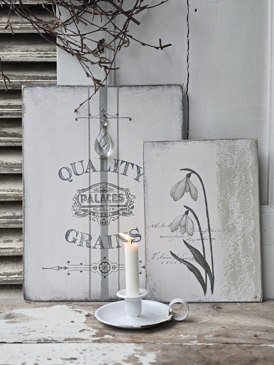 Ob Shabby Chic Deko, Landhausstil Holzschild, Vintage Kunstkarte oder nachhaltige Wanddekoration, bei mir findest du Stücke, die Stil, Seele und Natürlichkeit vereinen.