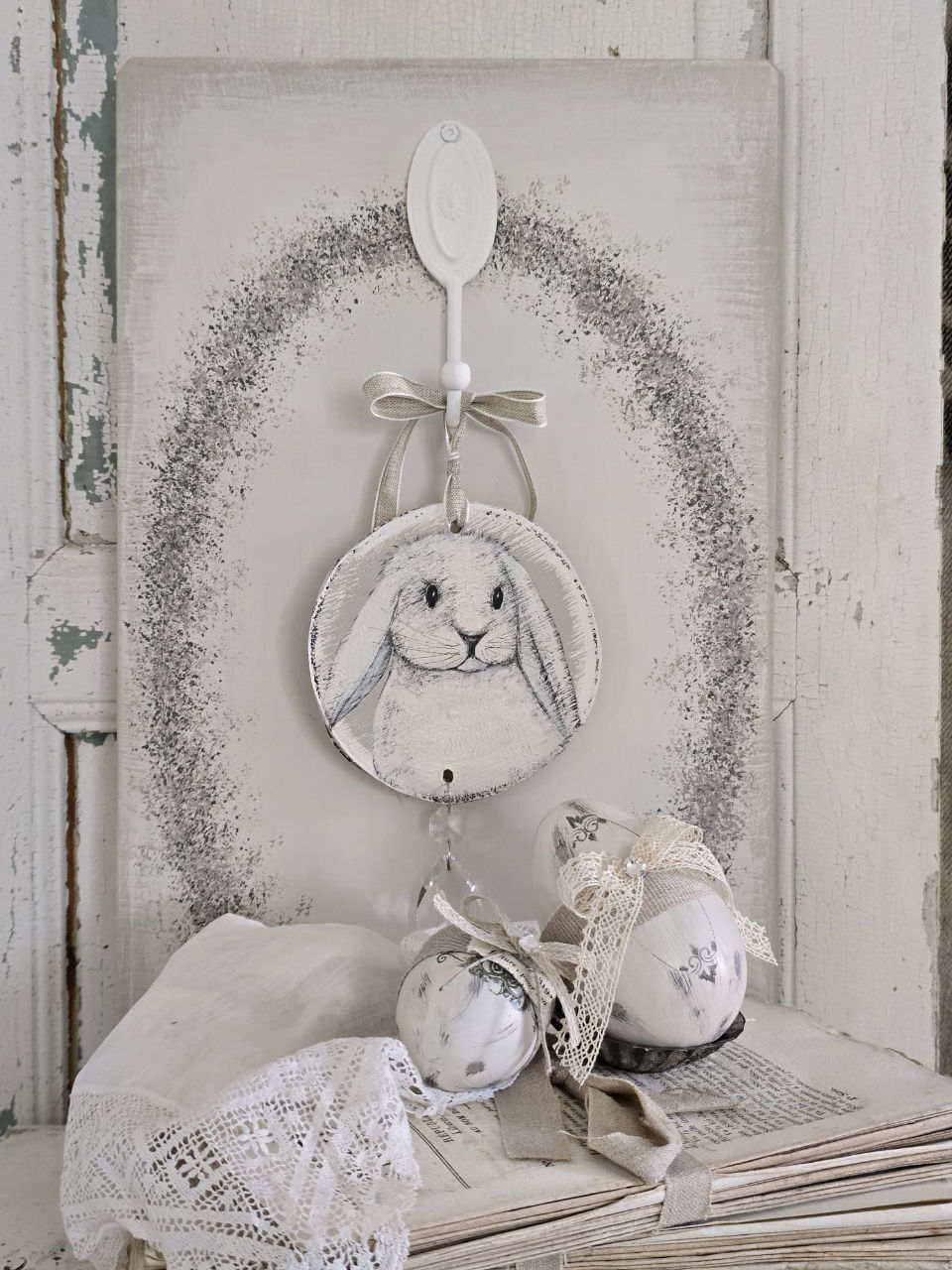 Kranzhänger, Vintage Holzeier, Holzbilder Ostern und Holzanhänger Hasenschule
