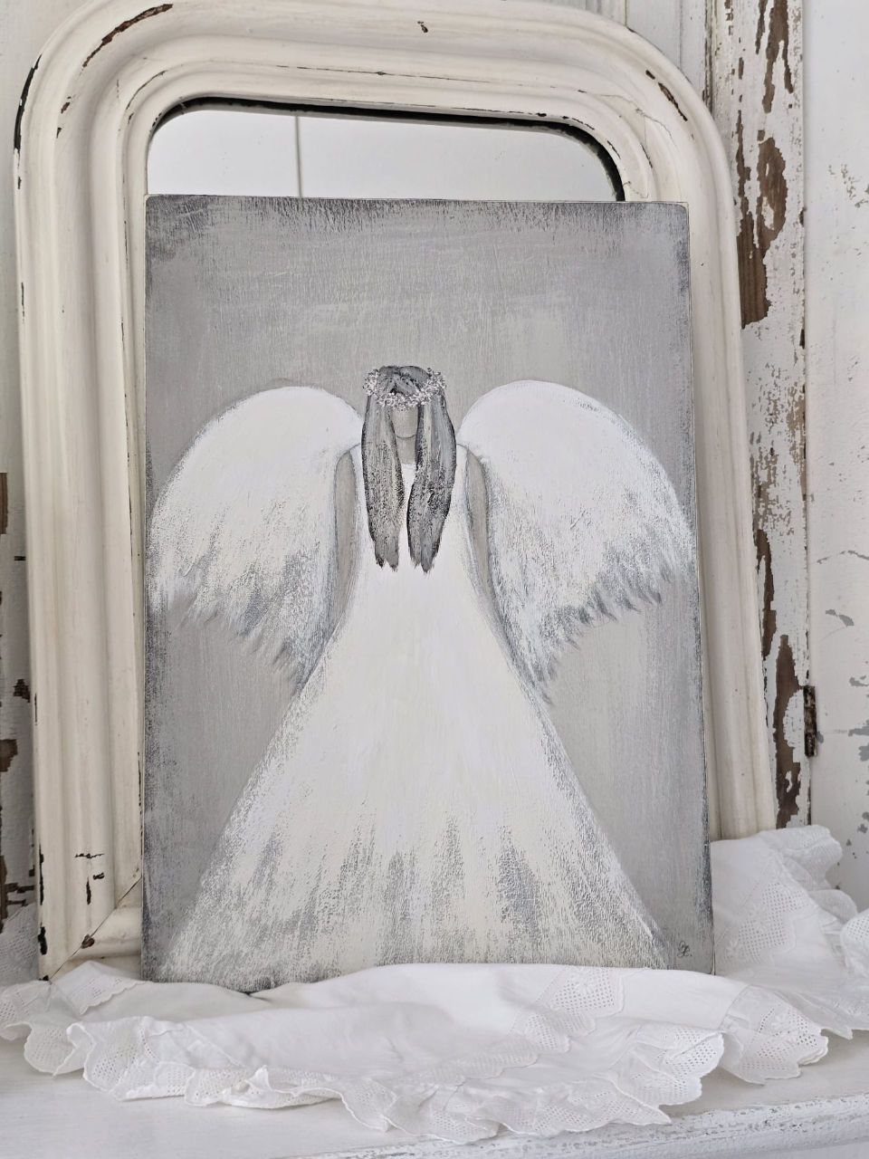 In Handarbeit und mit viel Liebe hergestellte Holzbilder Engel - Botschafter des Herzens, inspiriert von der Schönheit französischer Höfe und Landhäuser.