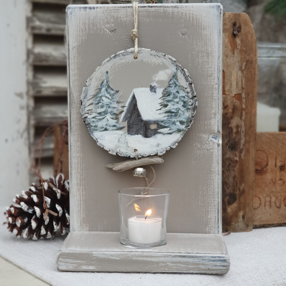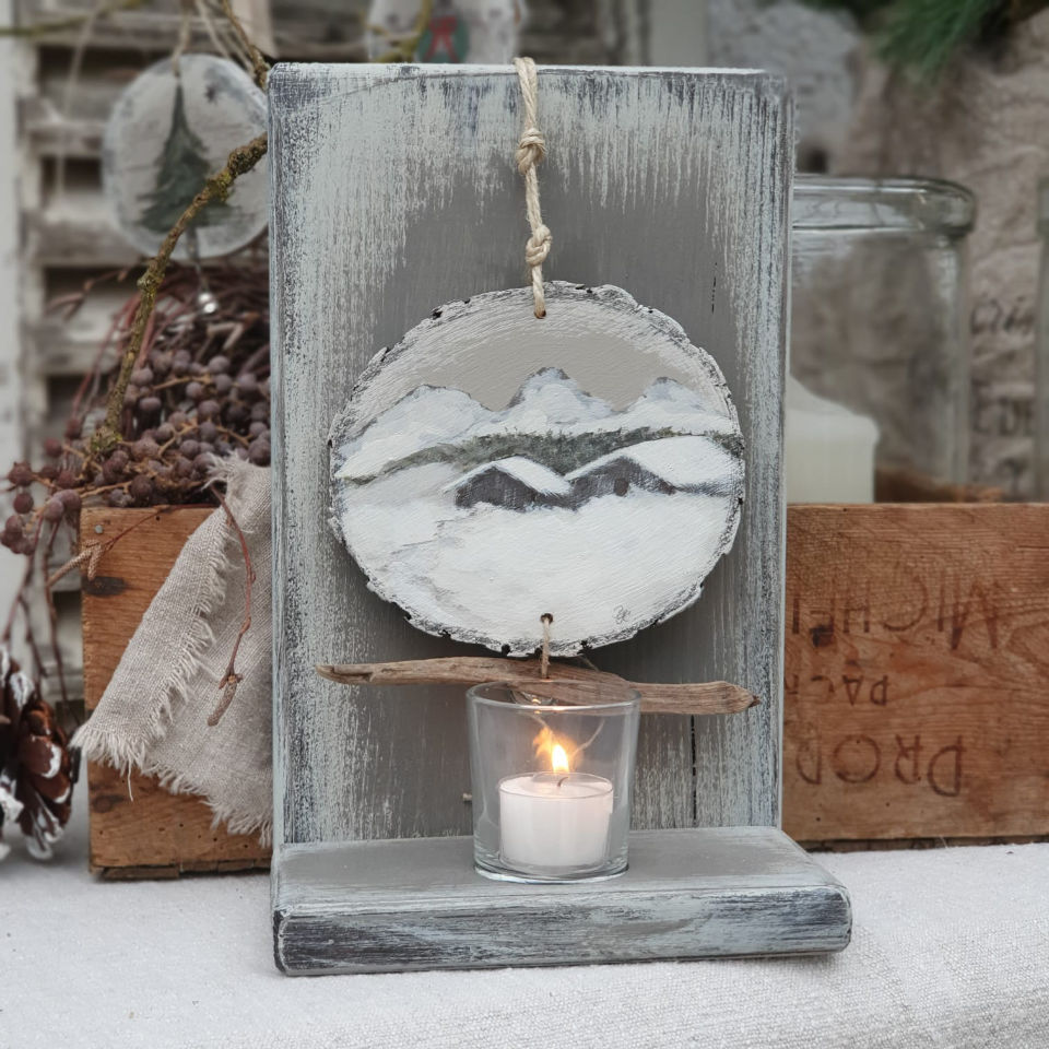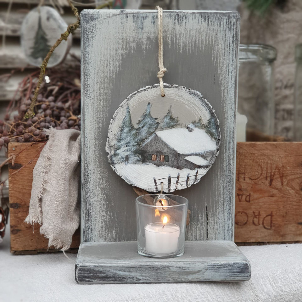 Handgemalte Anhänger auf Holzscheiben "Winterstille".