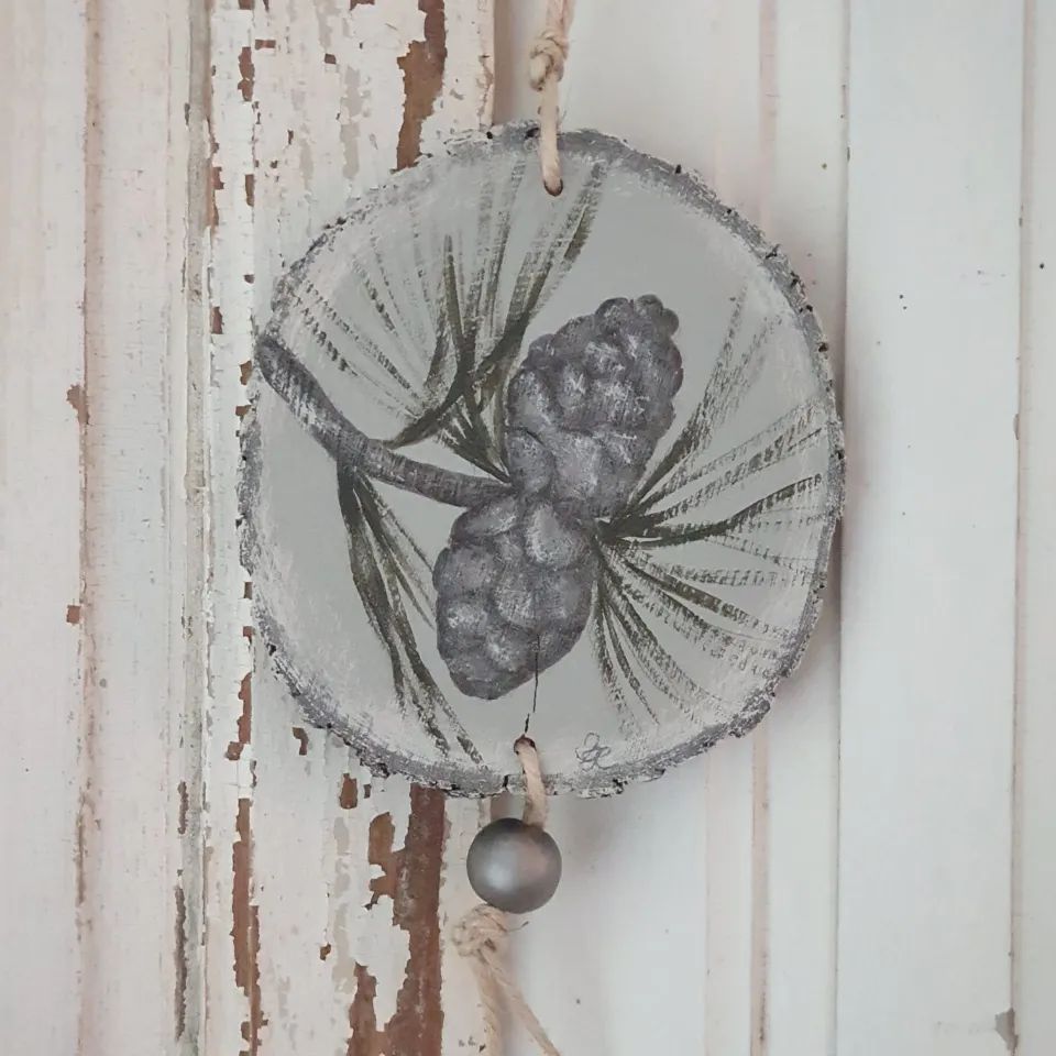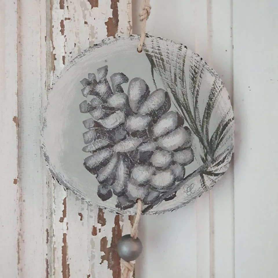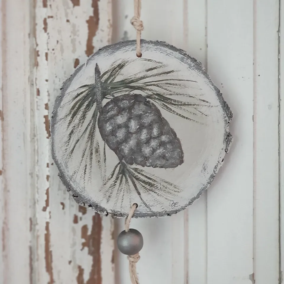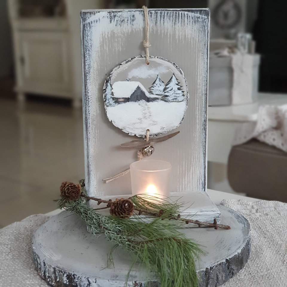 Handgemalte Anhänger auf Holzscheiben "Winterstille".