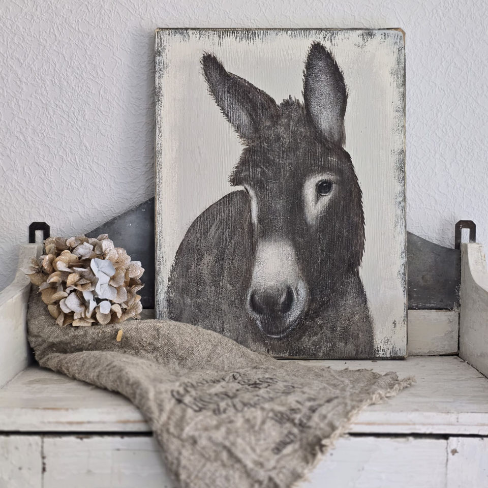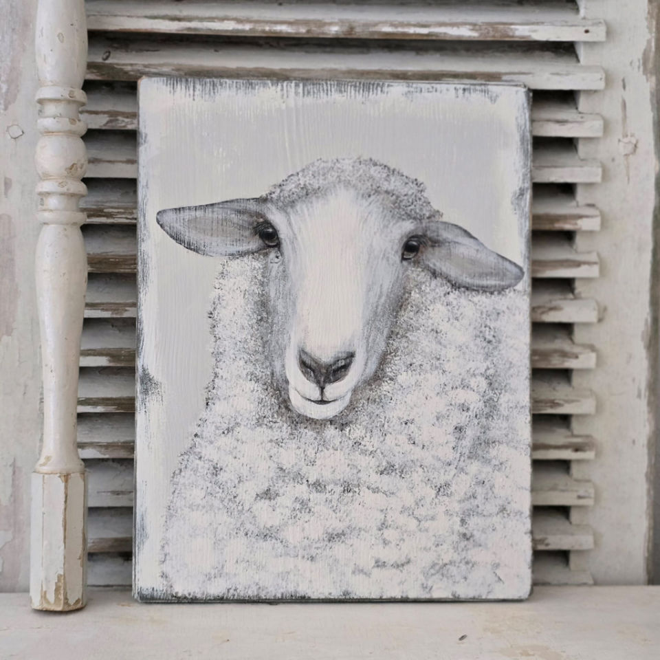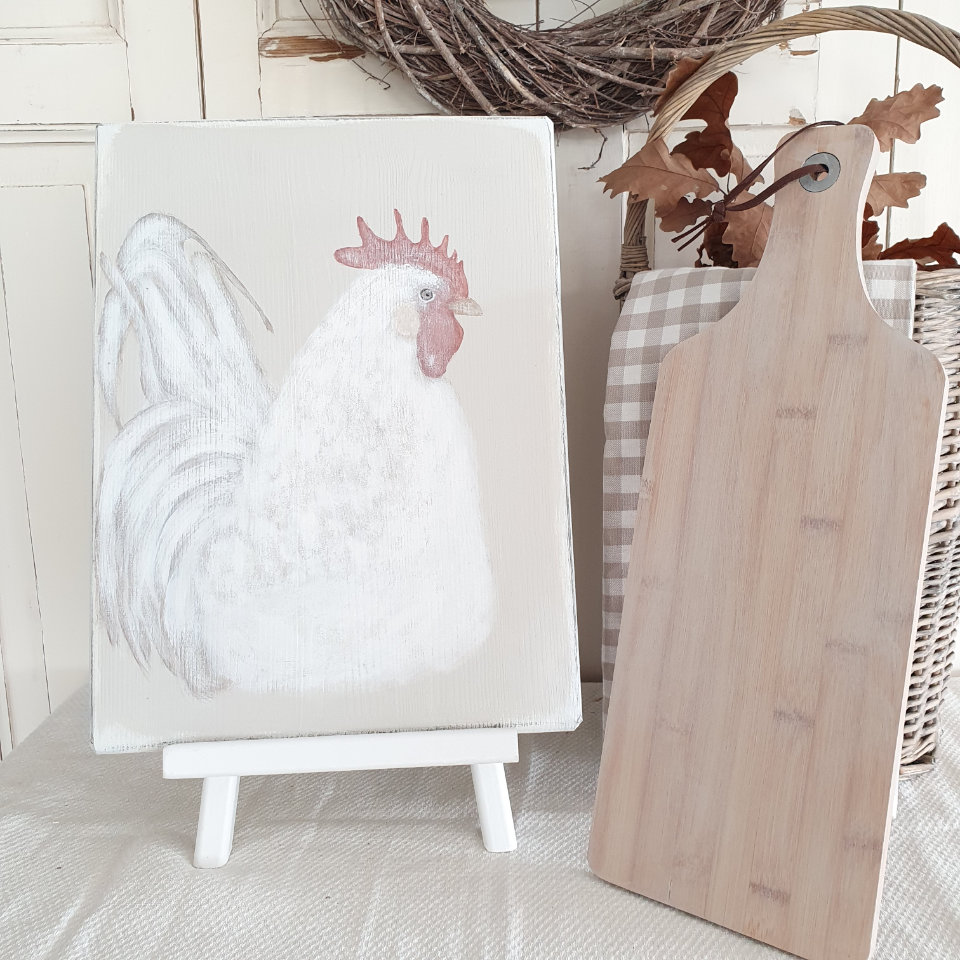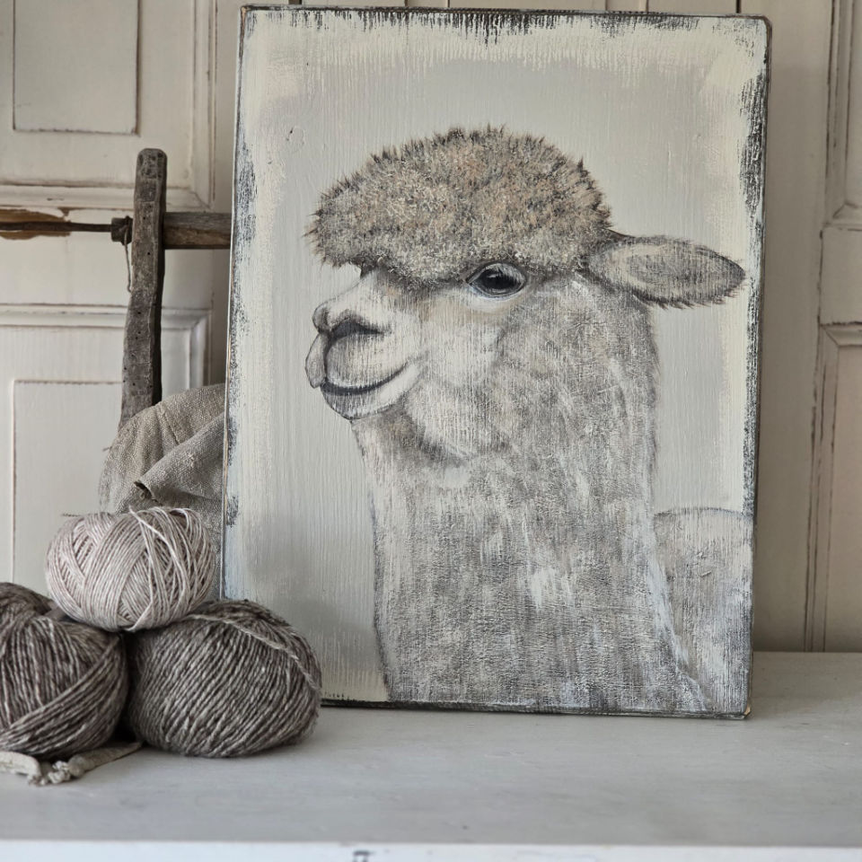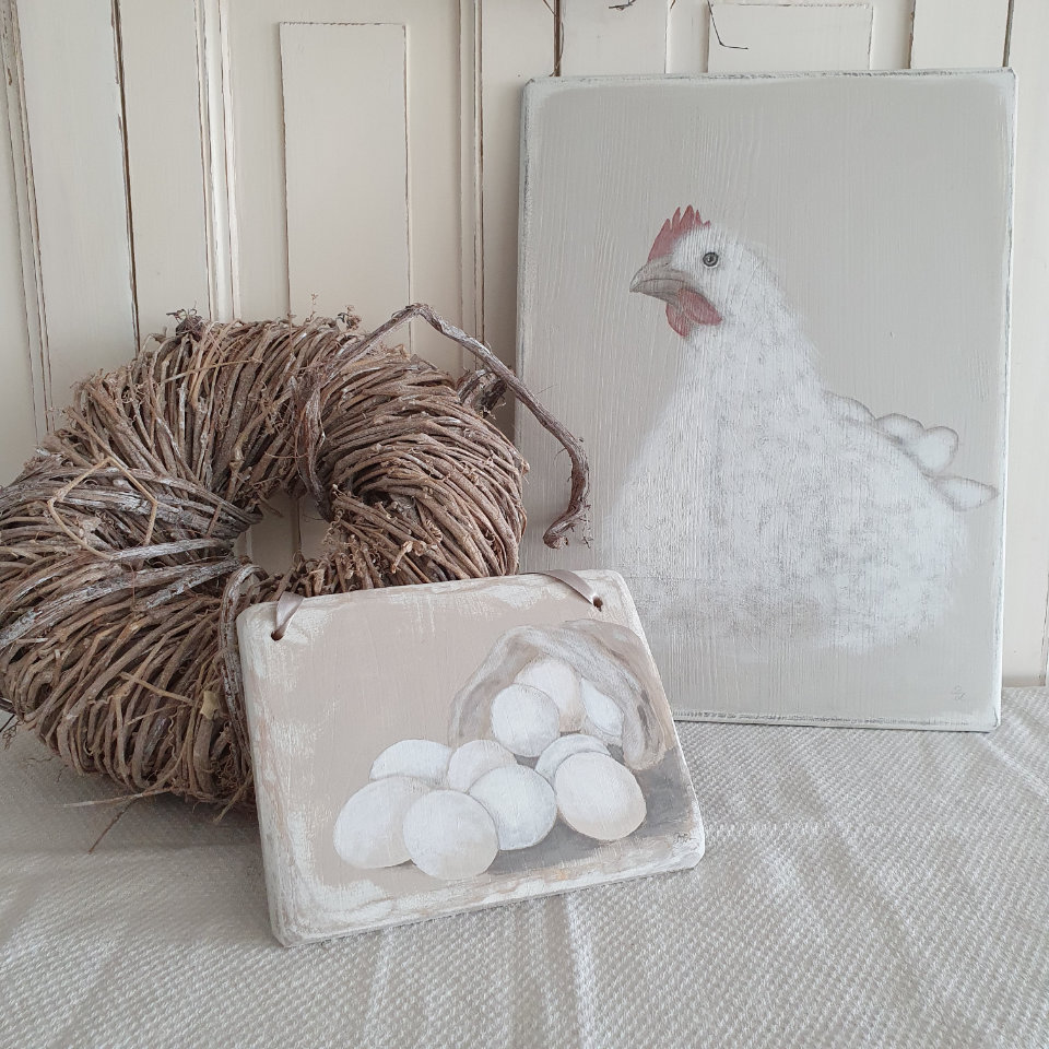 Handgemalte Holzbilder und Vintage-Karten-Design mit verschiedenen Kompositionen.