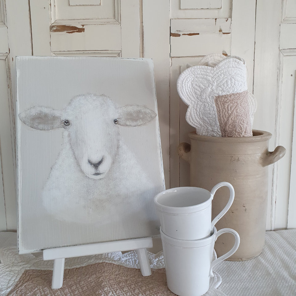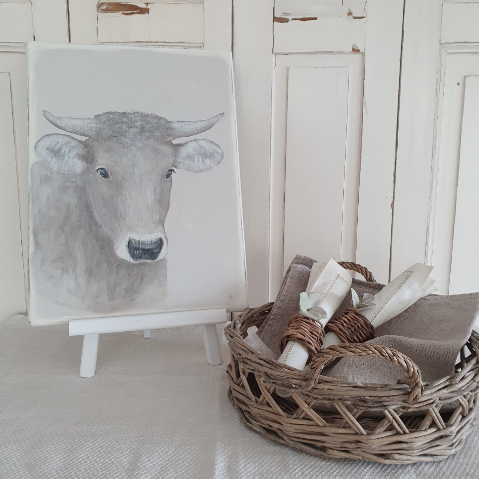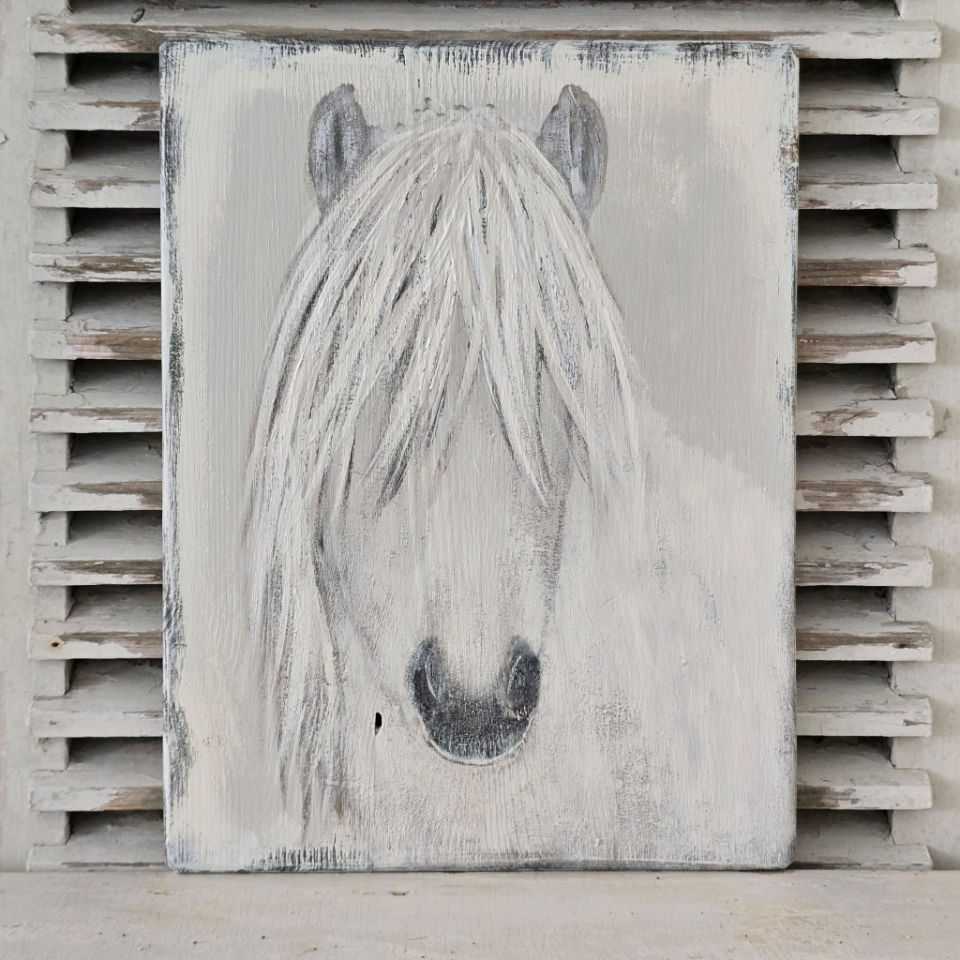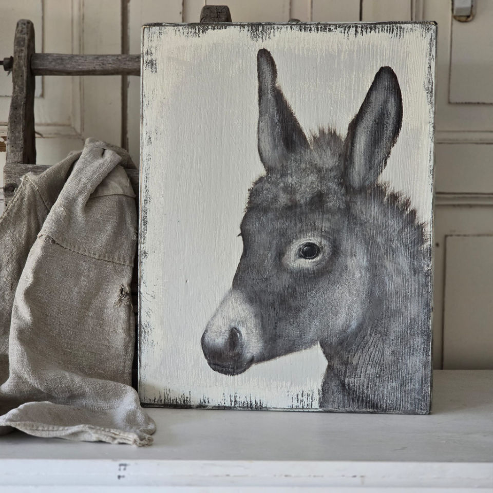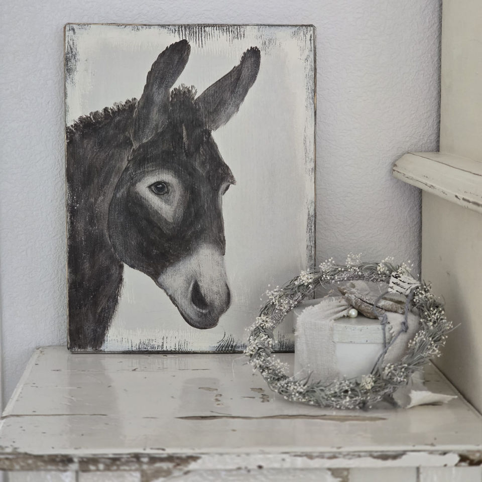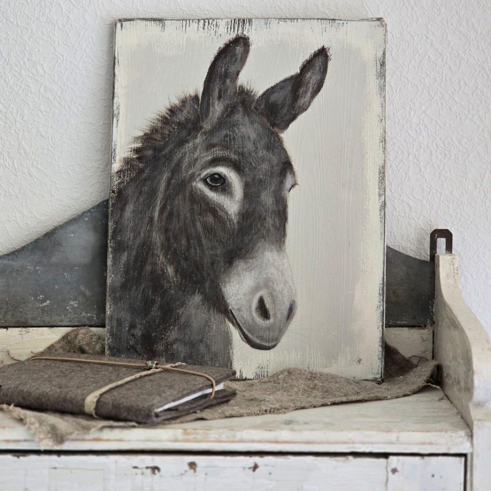 Handgemalte Holzbilder und Vintage-Karten-Design mit verschiedenen Kompositionen.