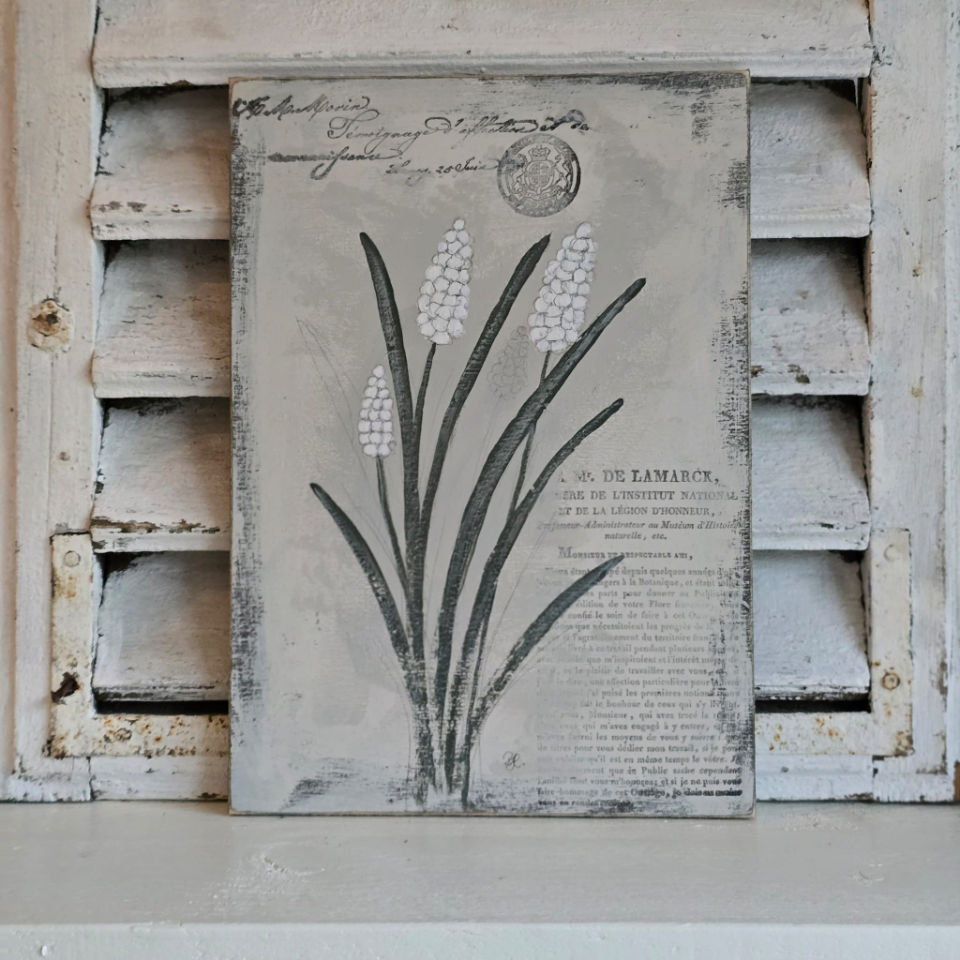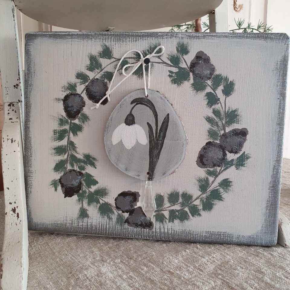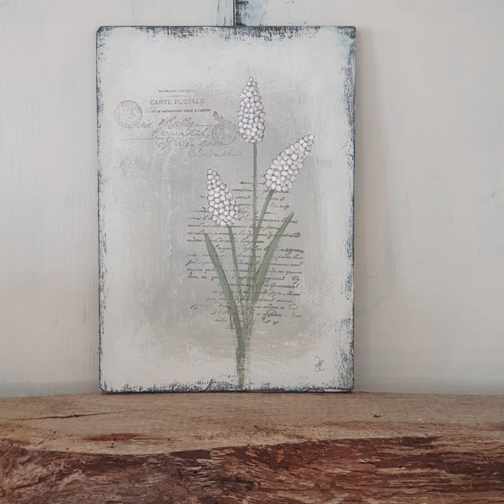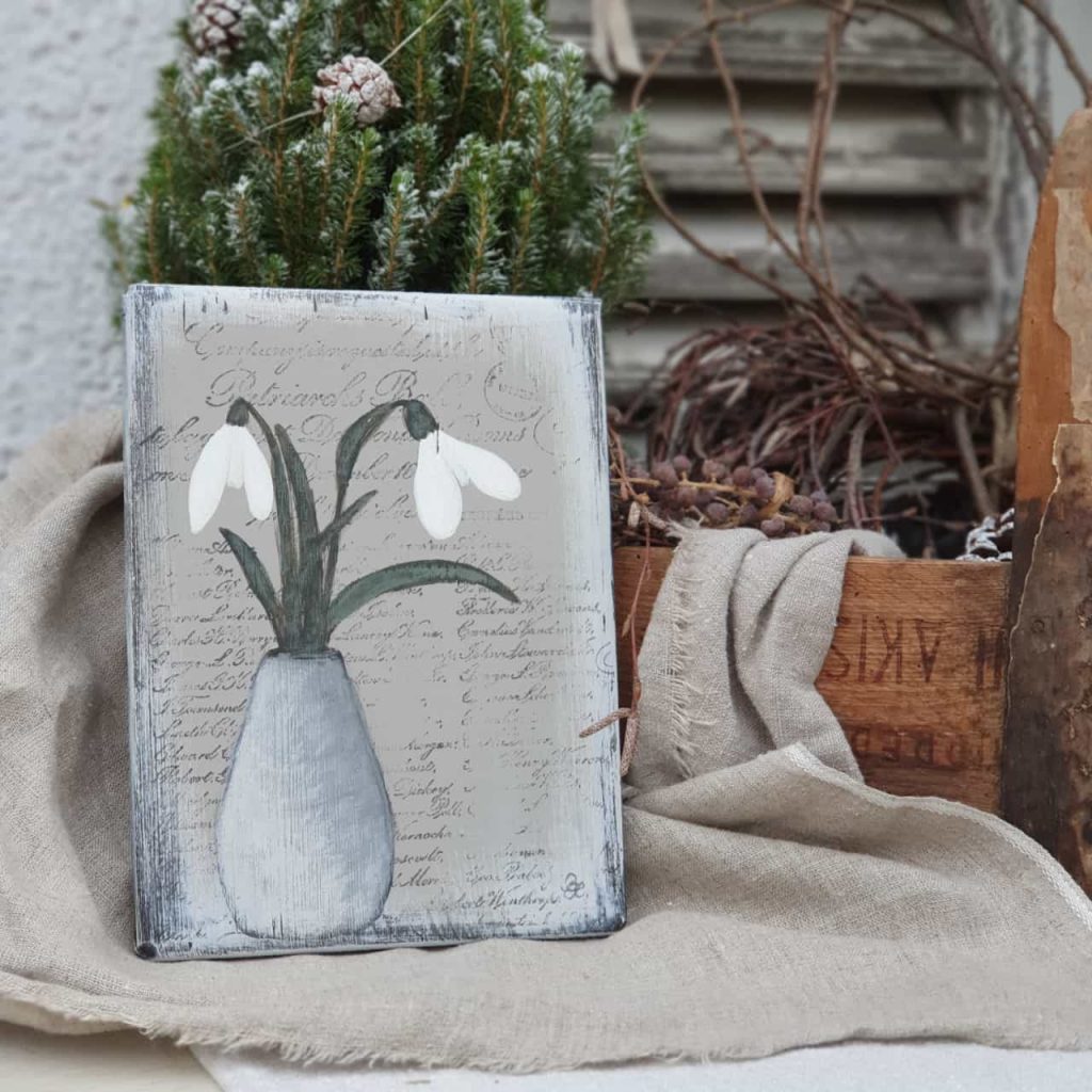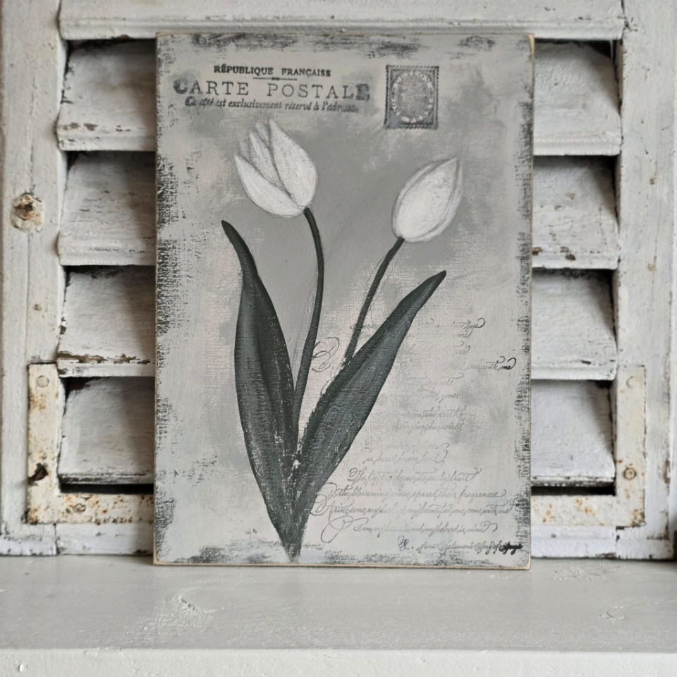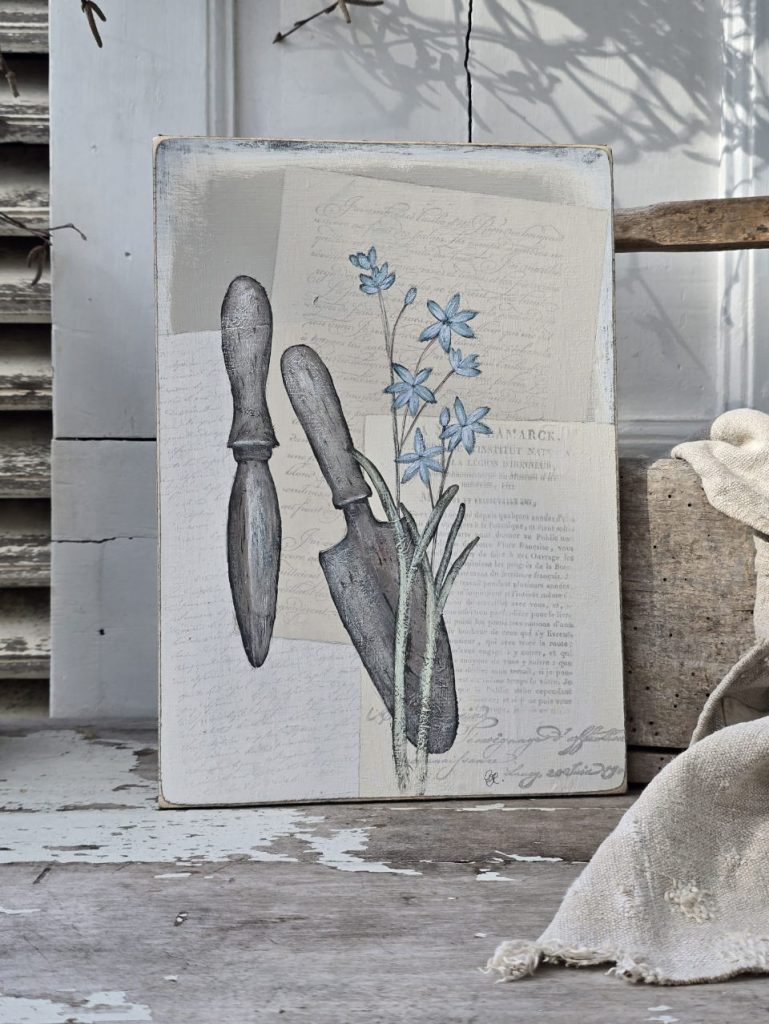 Handgemalte Holzbilder und Vintage-Karten-Design mit verschiedenen Kompositionen.