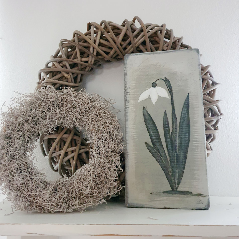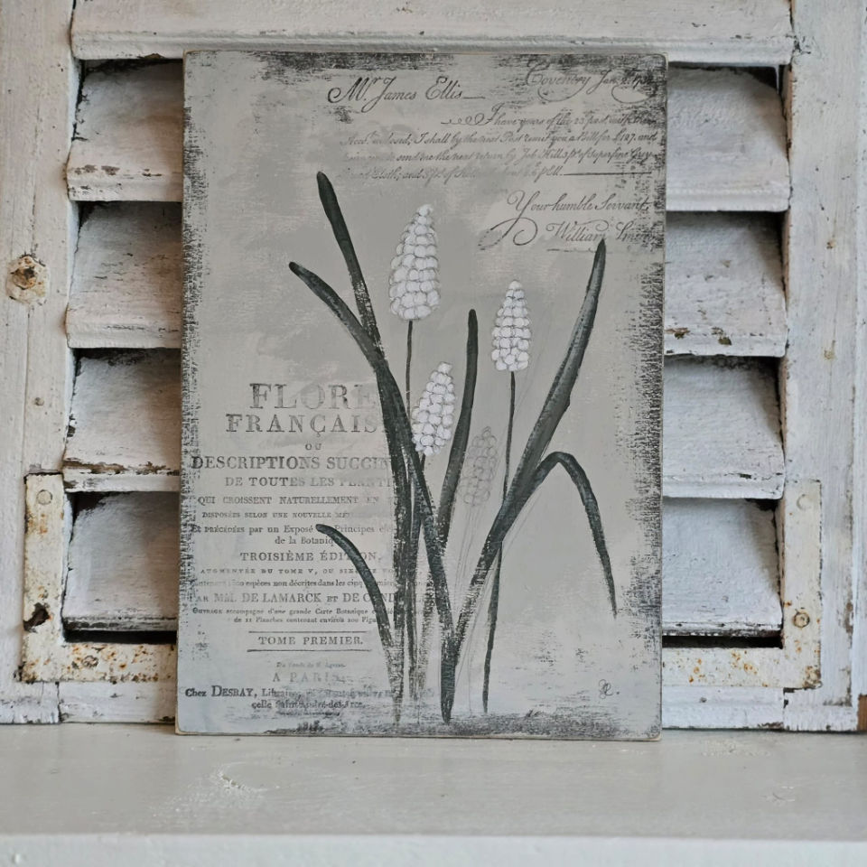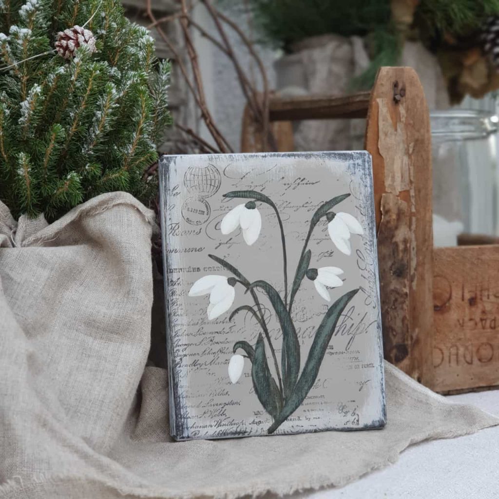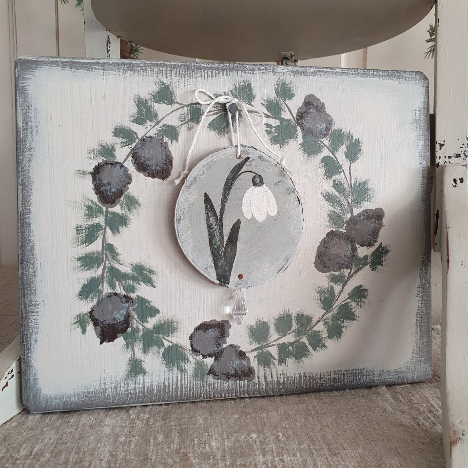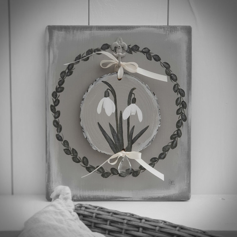 Handgemalte Holzbilder und Vintage-Karten-Design mit verschiedenen Kompositionen.