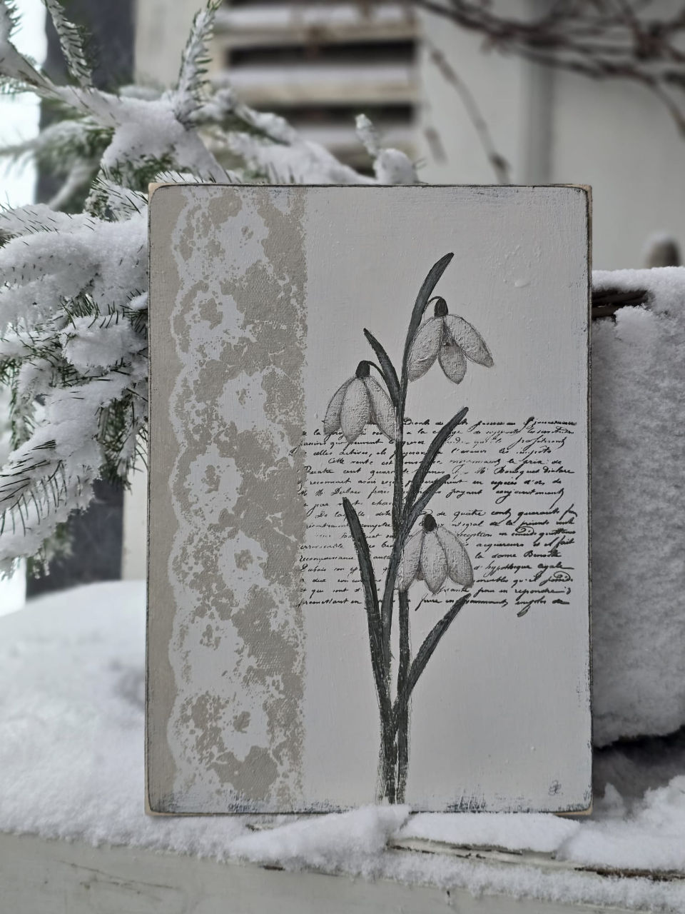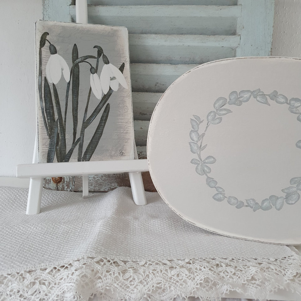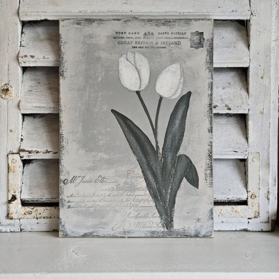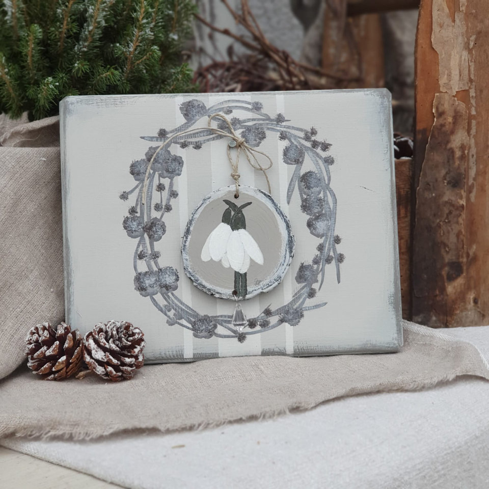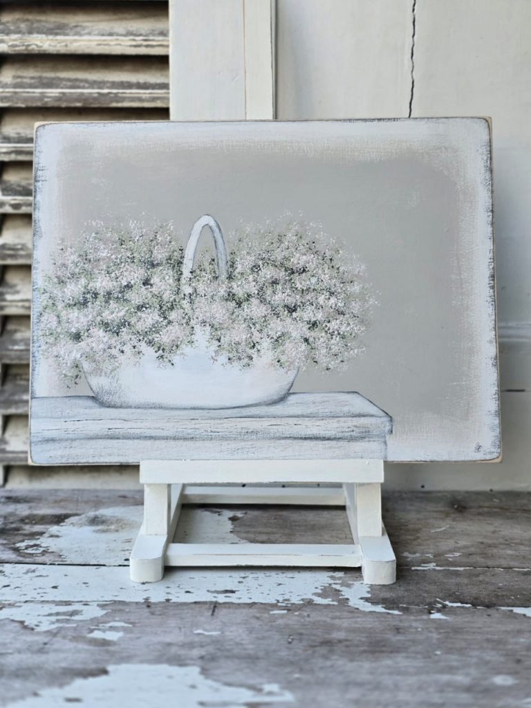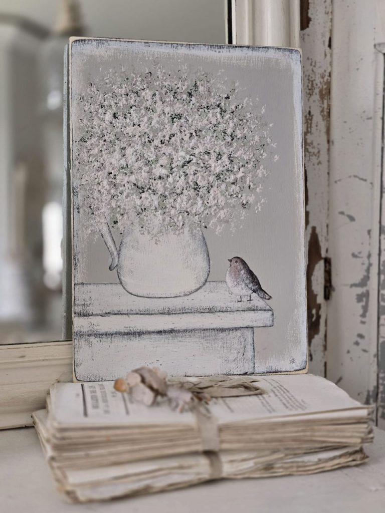 Handgemalte Holzbilder und Vintage-Karten-Design mit verschiedenen Kompositionen.