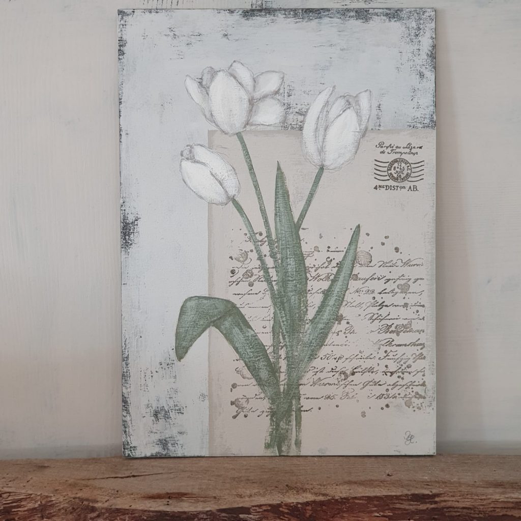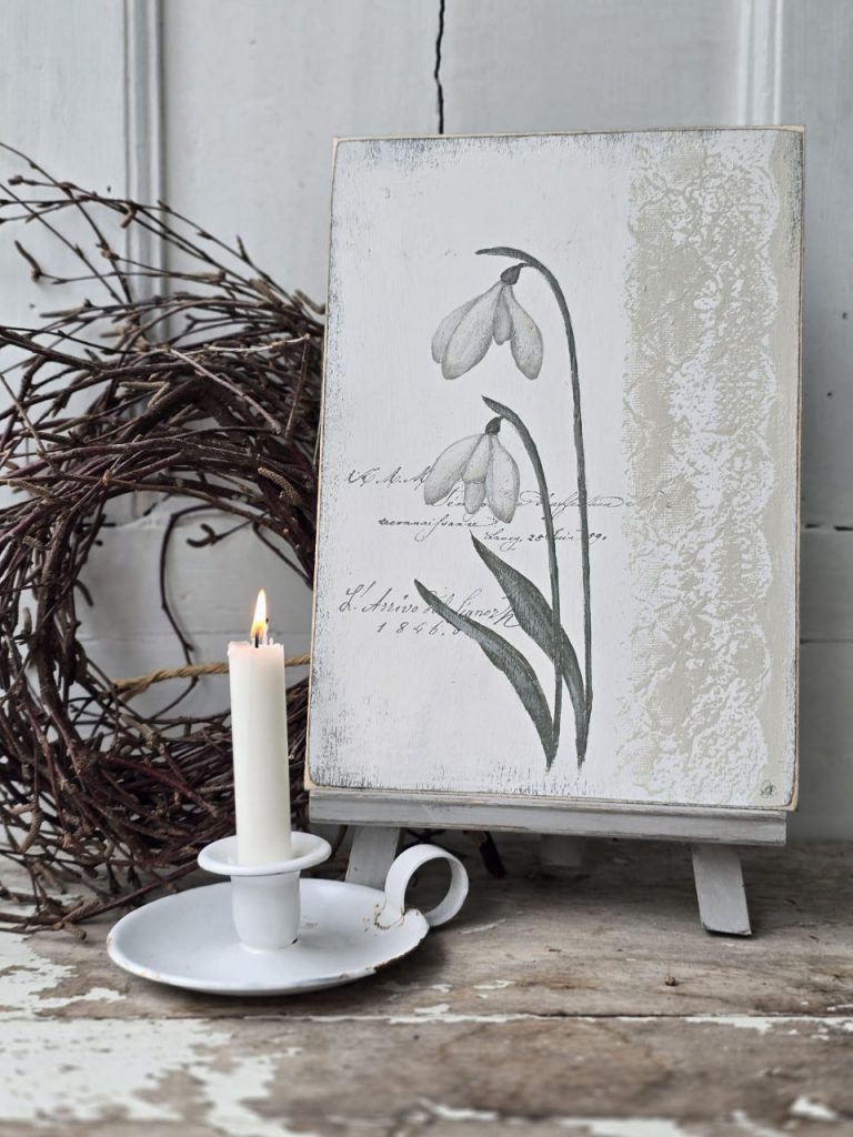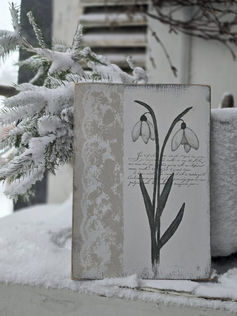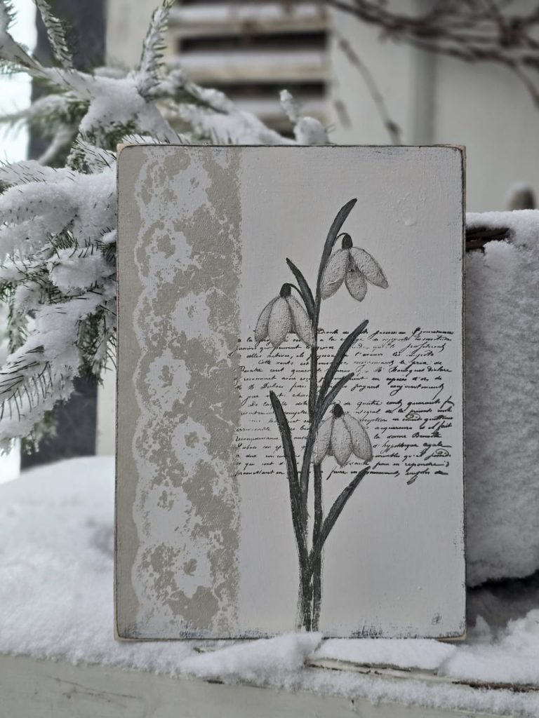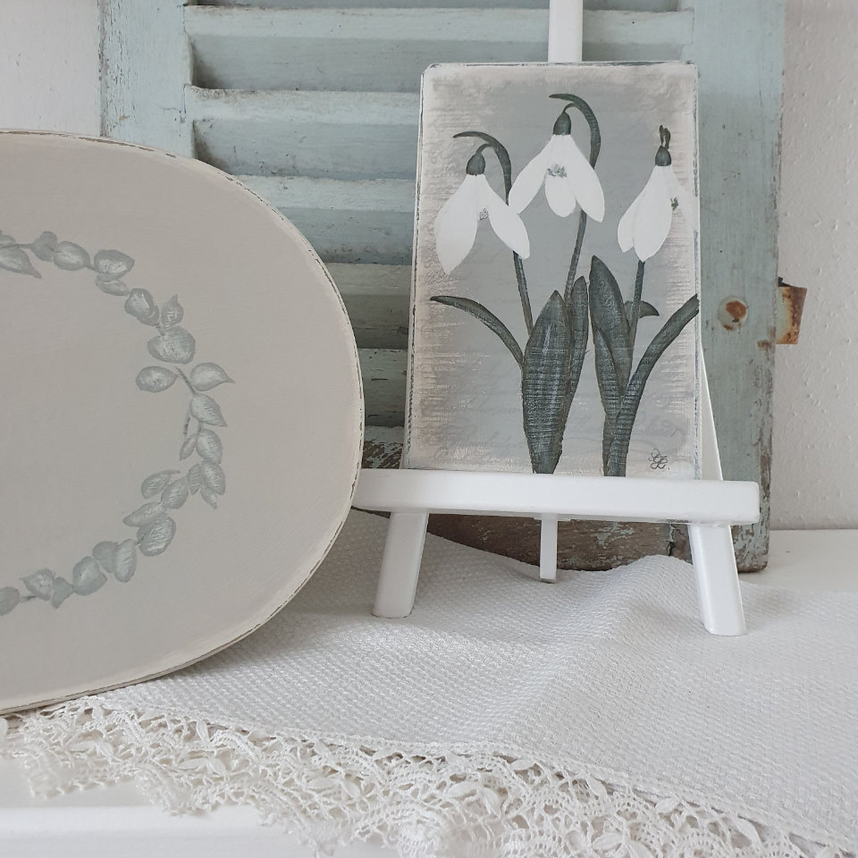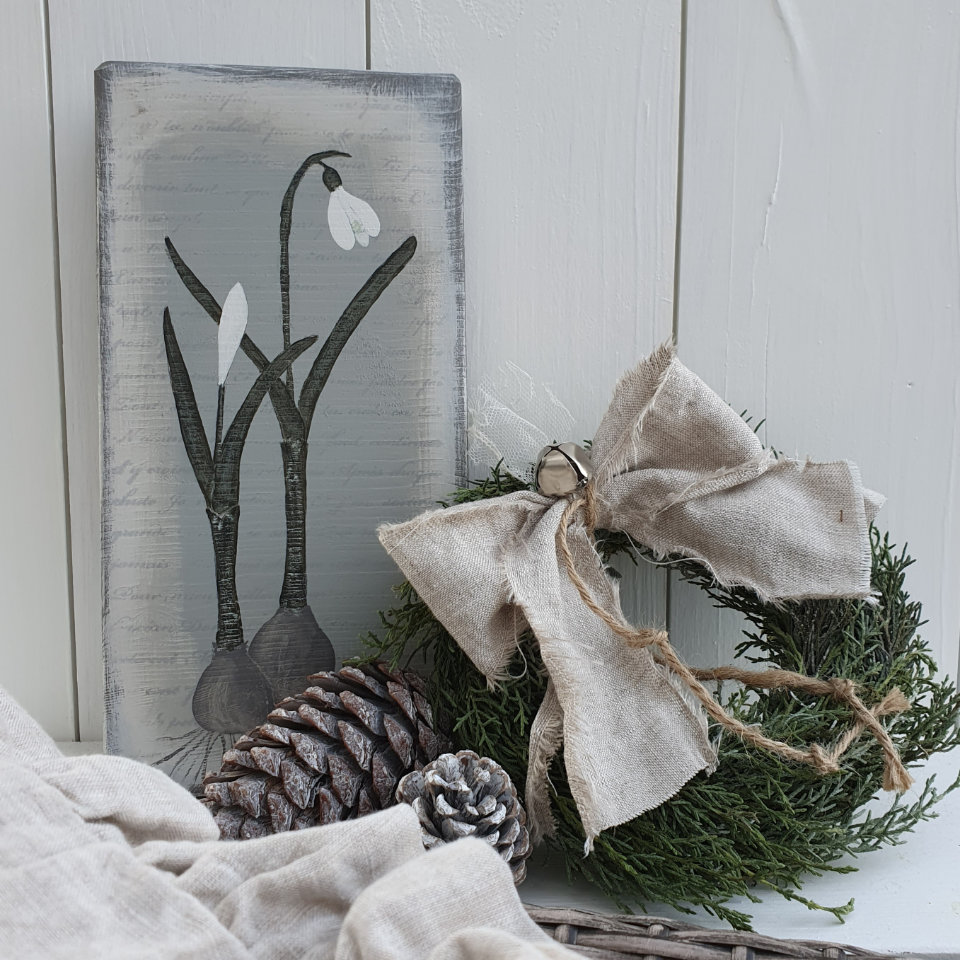 Handgemalte Holzbilder und Vintage-Karten-Design mit verschiedenen Kompositionen.