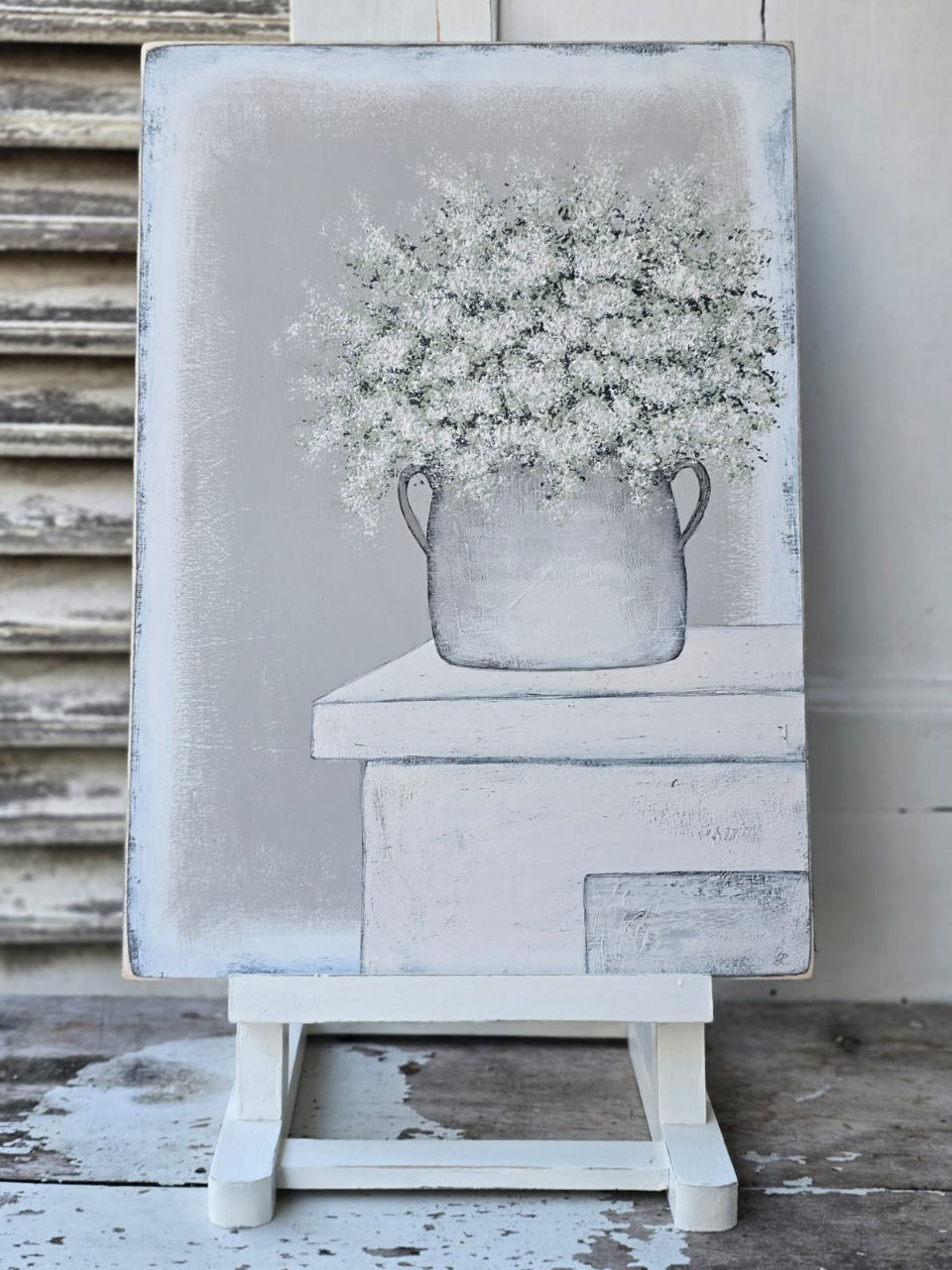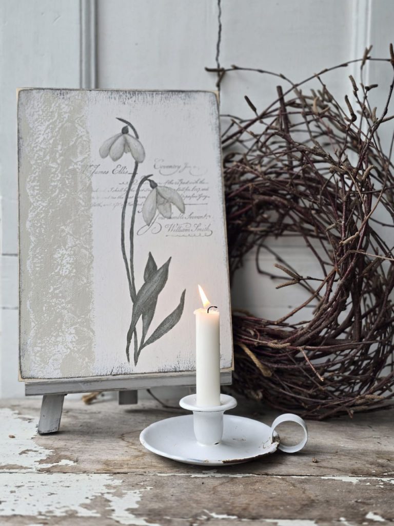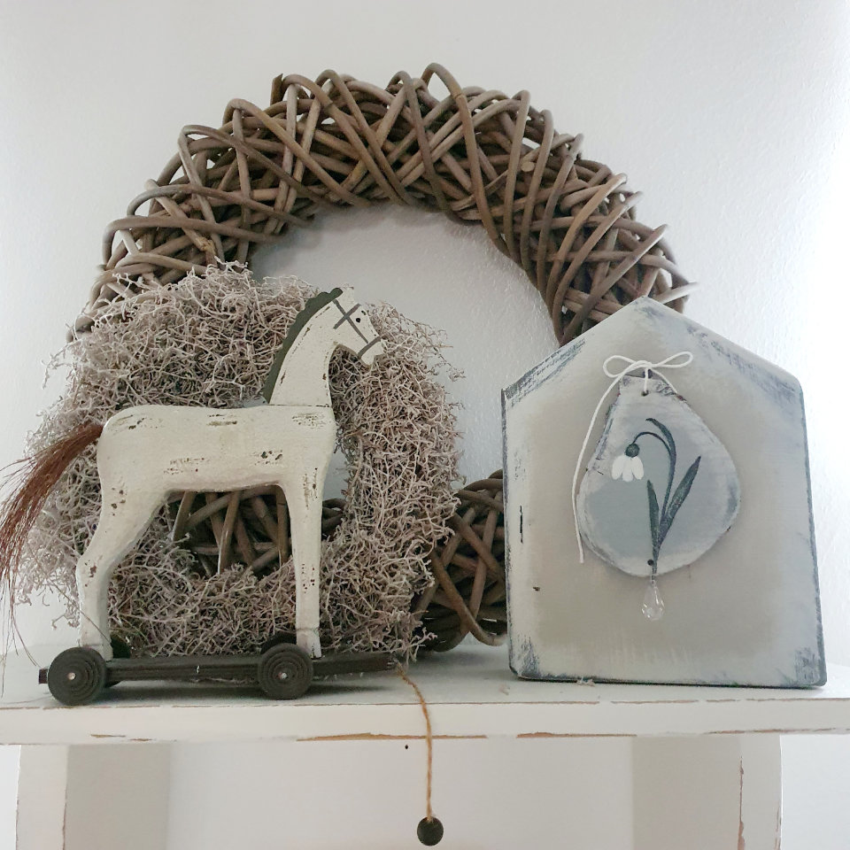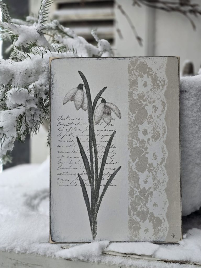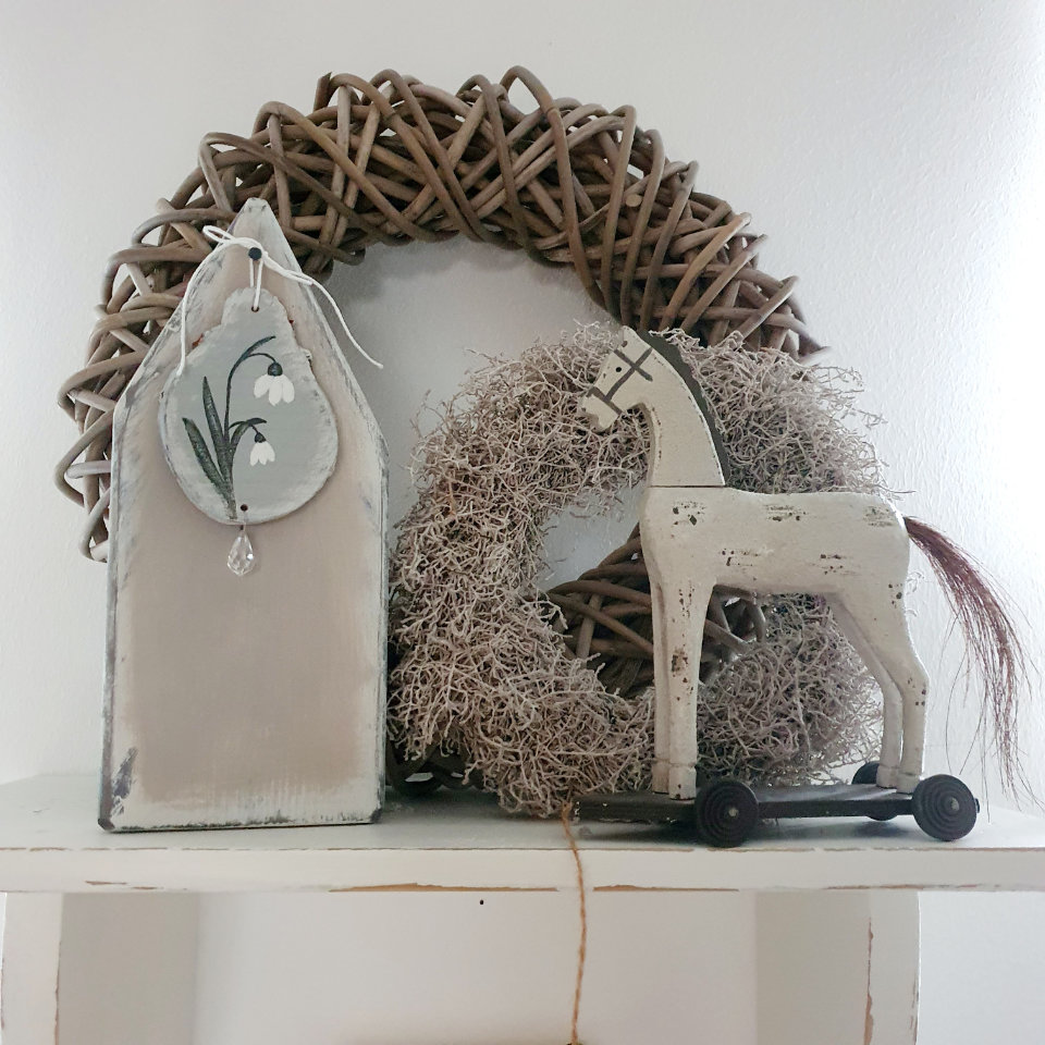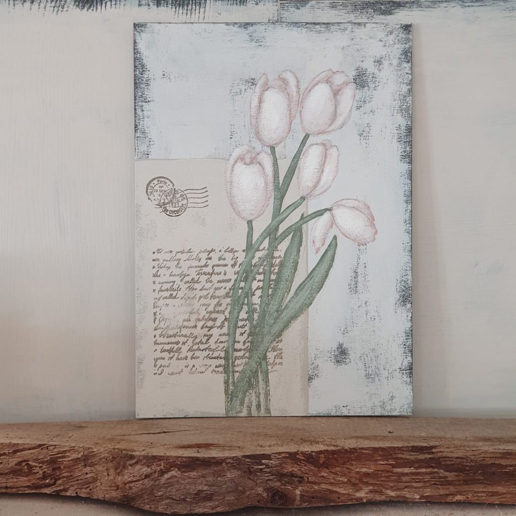 Handgemalte Holzbilder und Vintage-Karten-Design mit verschiedenen Kompositionen.