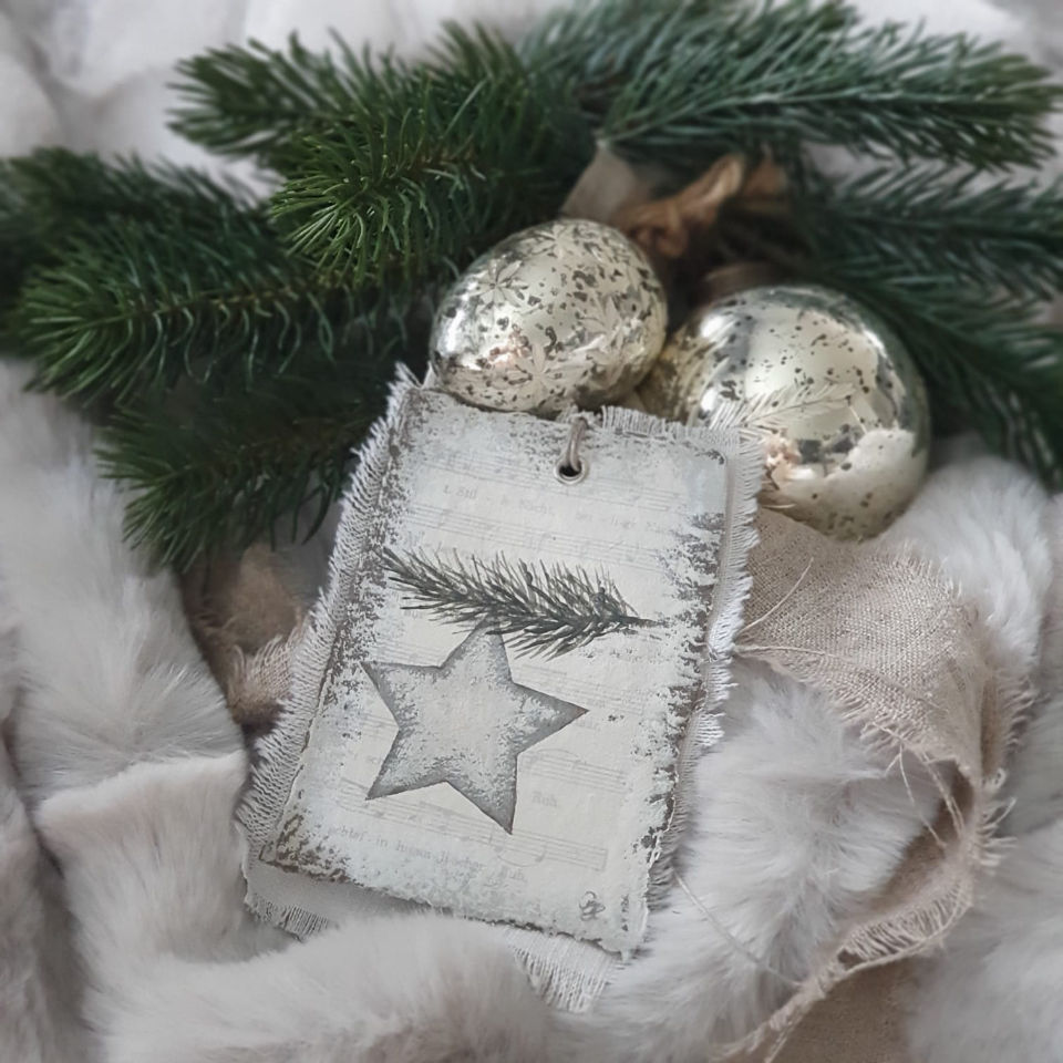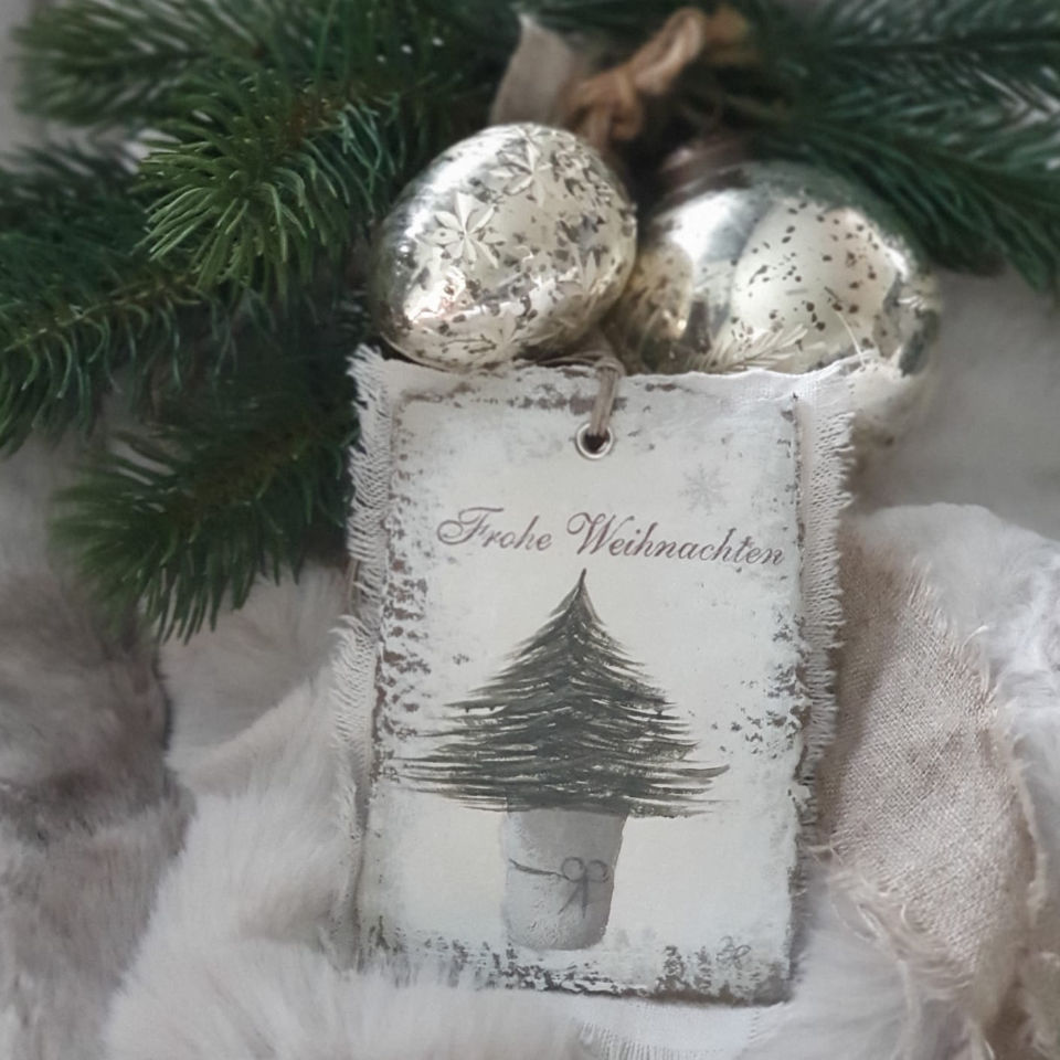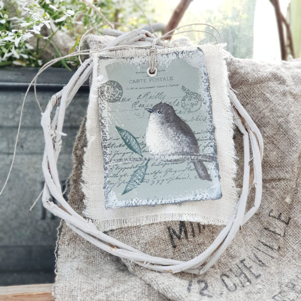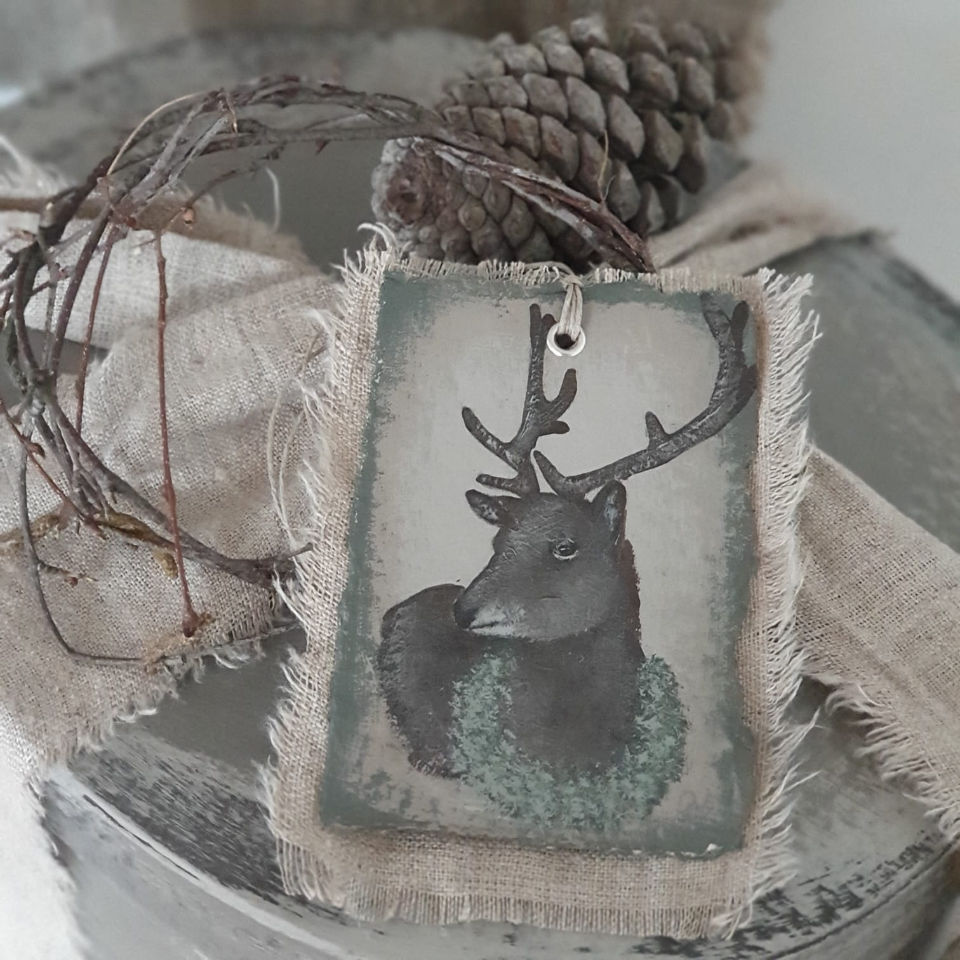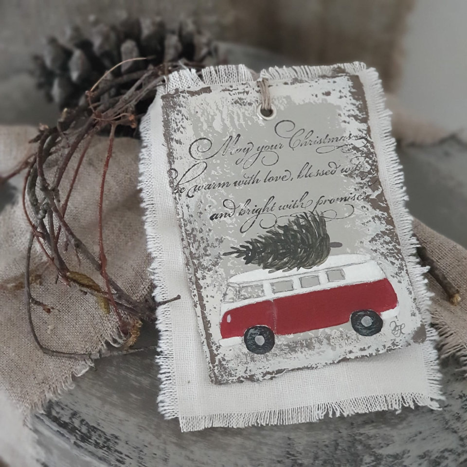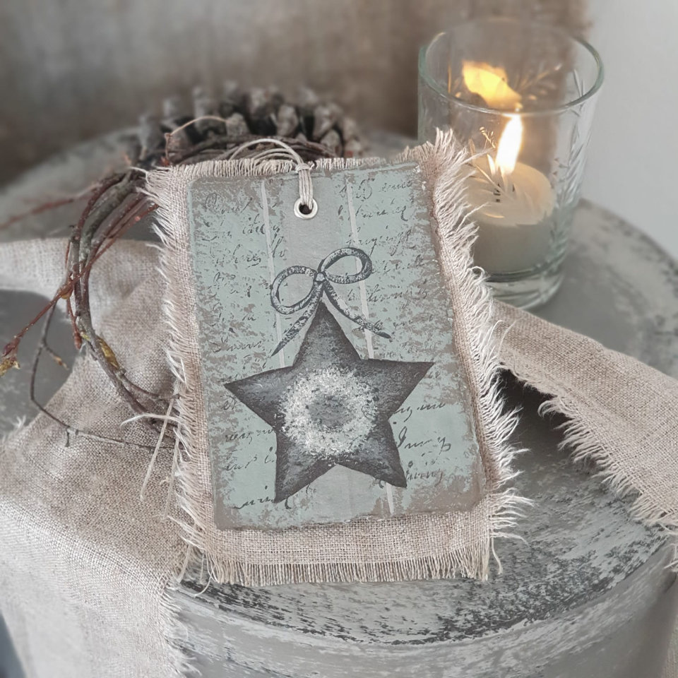 Handgemalte Leinenanhänger auf handgeschöpftem Büttenpapier sind von meinen Holzbildern inspiriert.