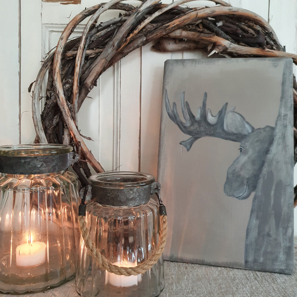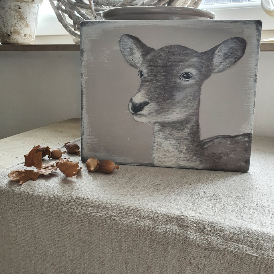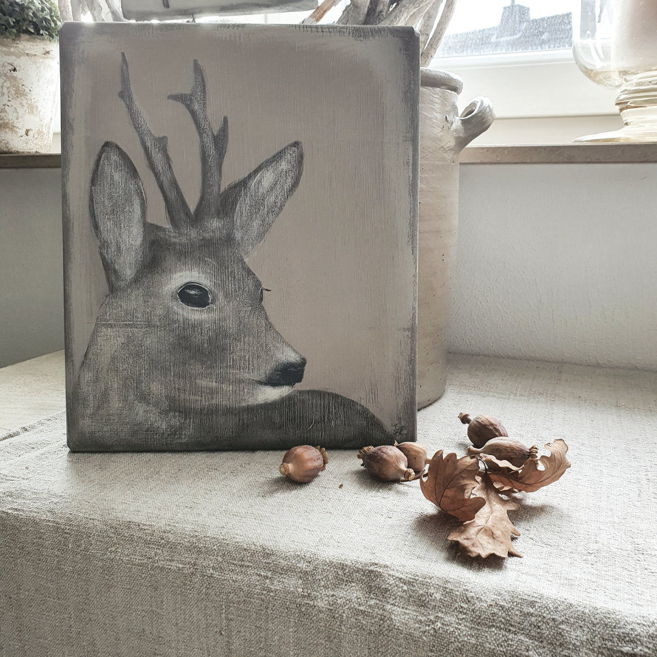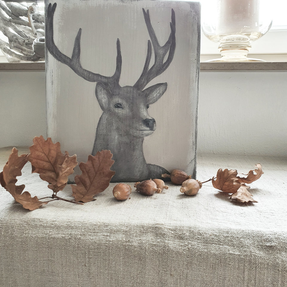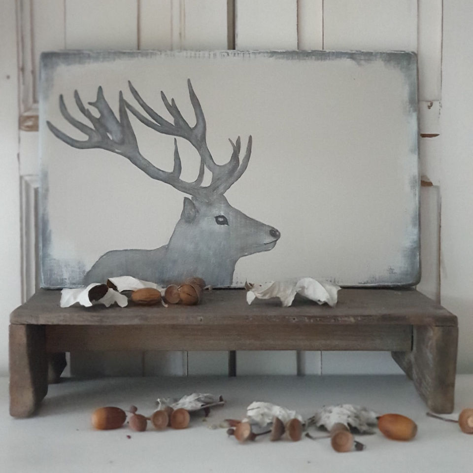 Handgemalte Holzbilder und Vintage-Karten-Design mit verschiedenen Kompositionen.