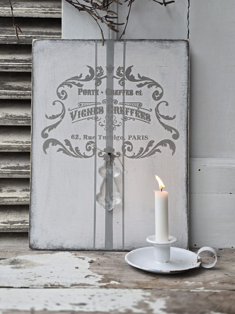 In Handarbeit und mit viel Liebe hergestellte Holzbilder Vintage Nostalgia, inspiriert von der Schönheit französischer Höfe und Landhäuser.