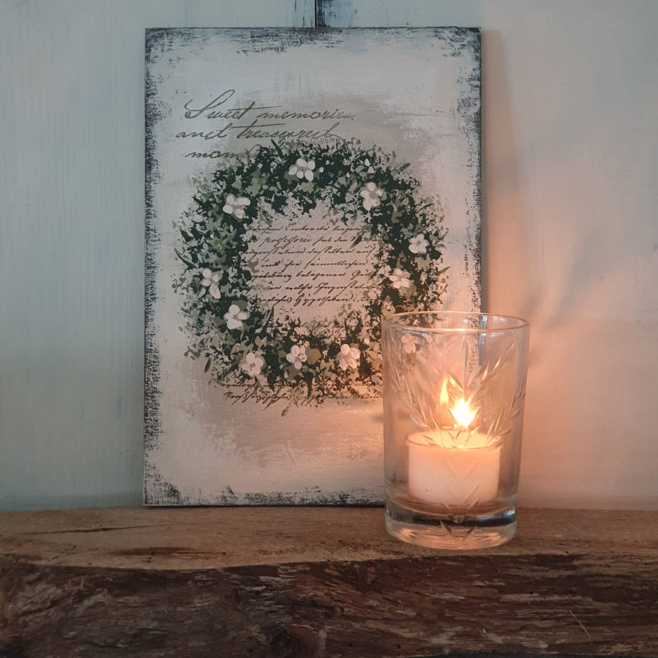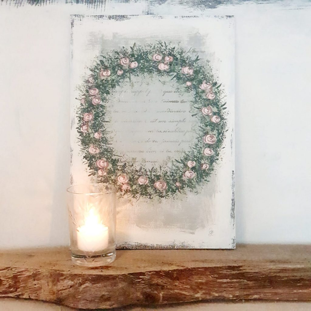 Handgemalte Kranzbilder mit verschiedenen Kompositionen.