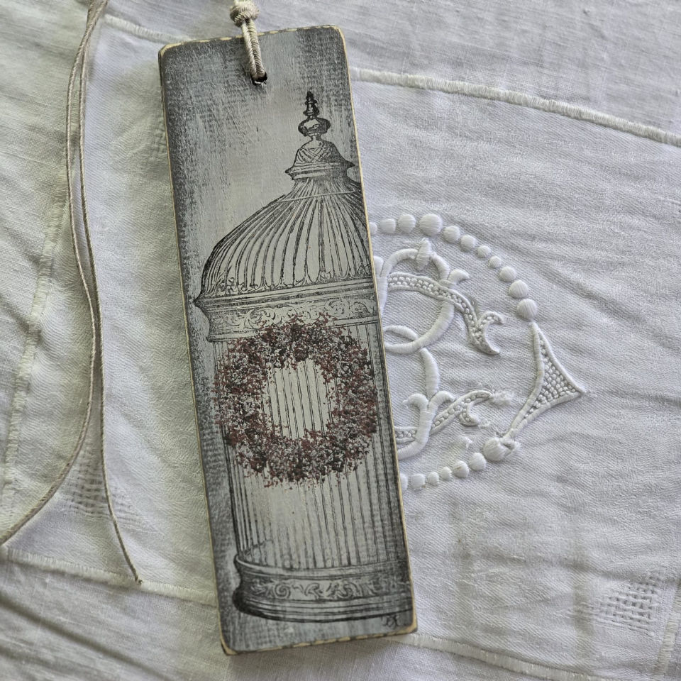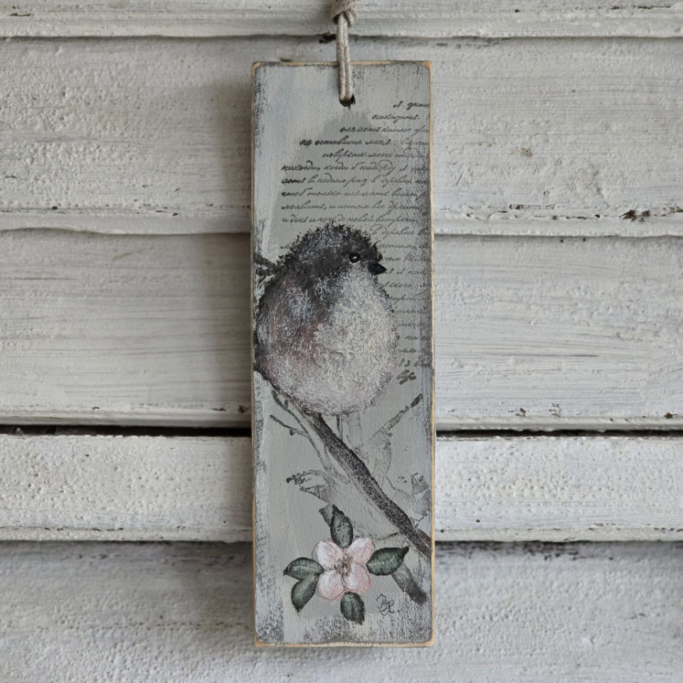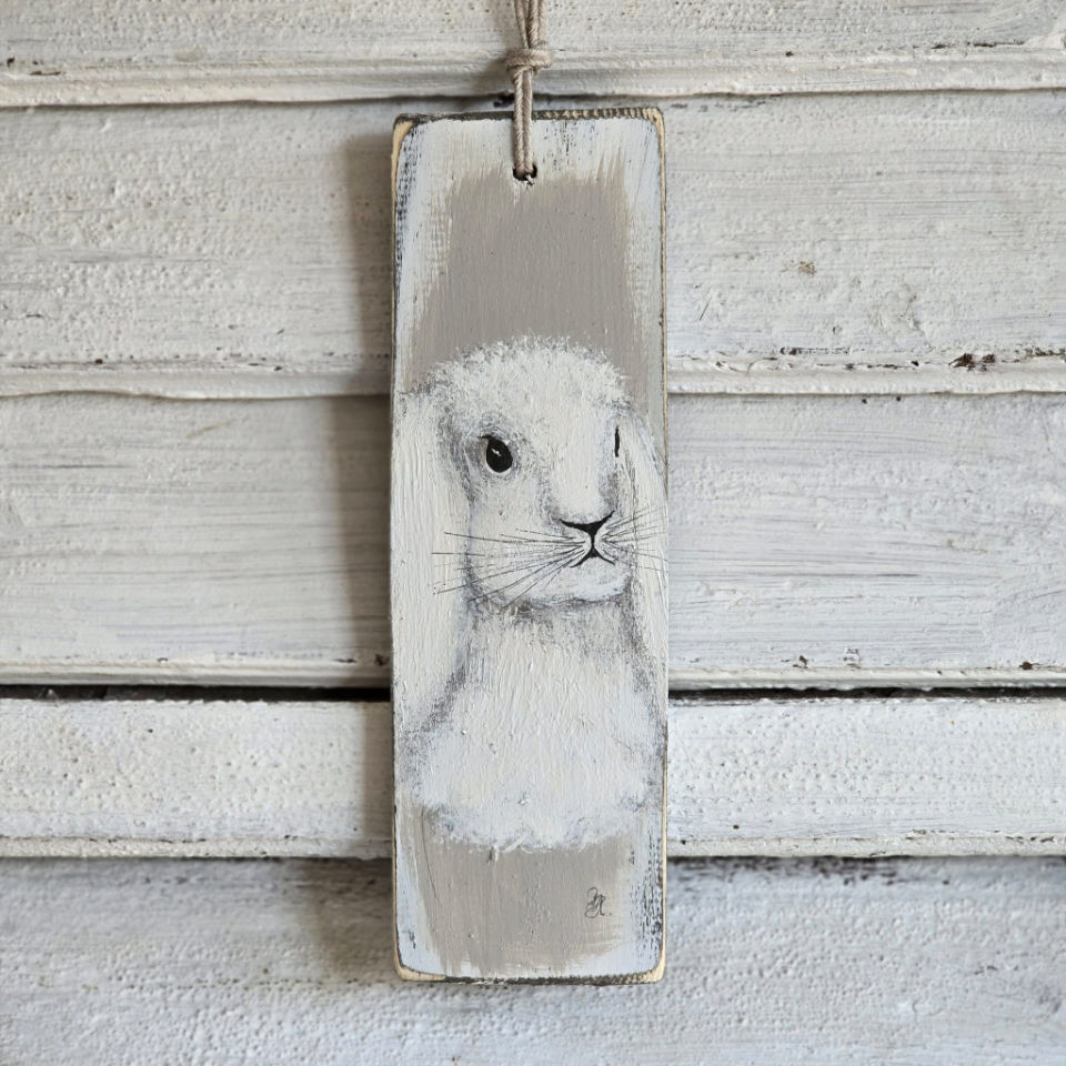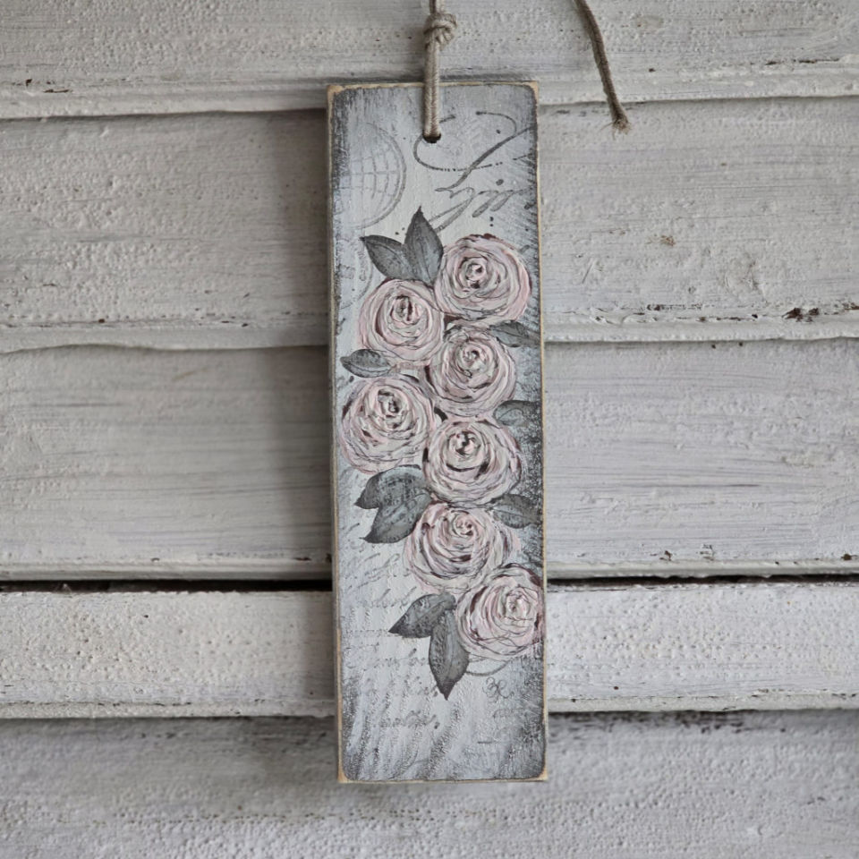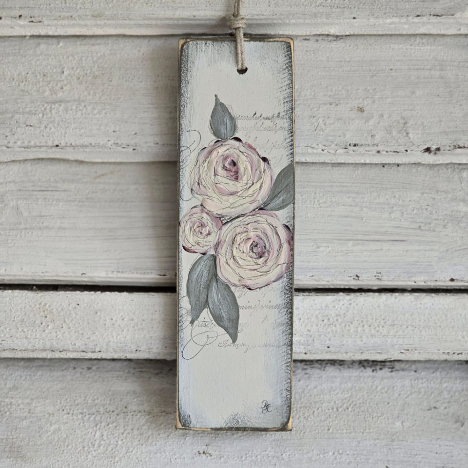 Handgemalte Kranzhänger auf Holz.