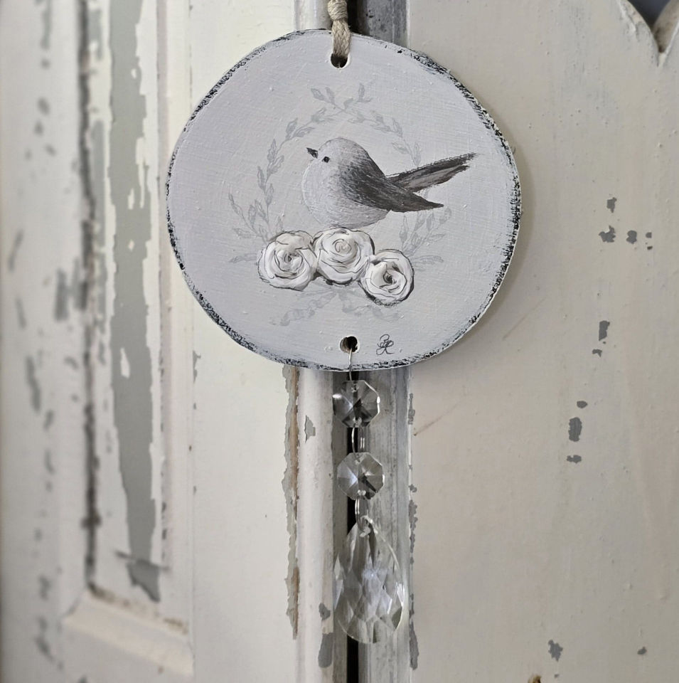 Handgemalte Anhänger auf Holzscheiben "Nostalgia".