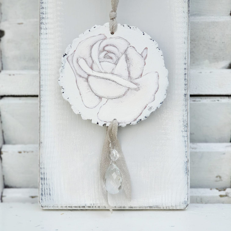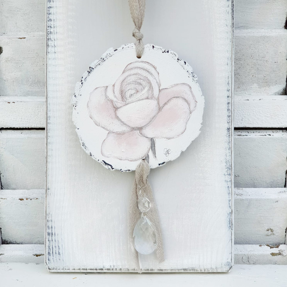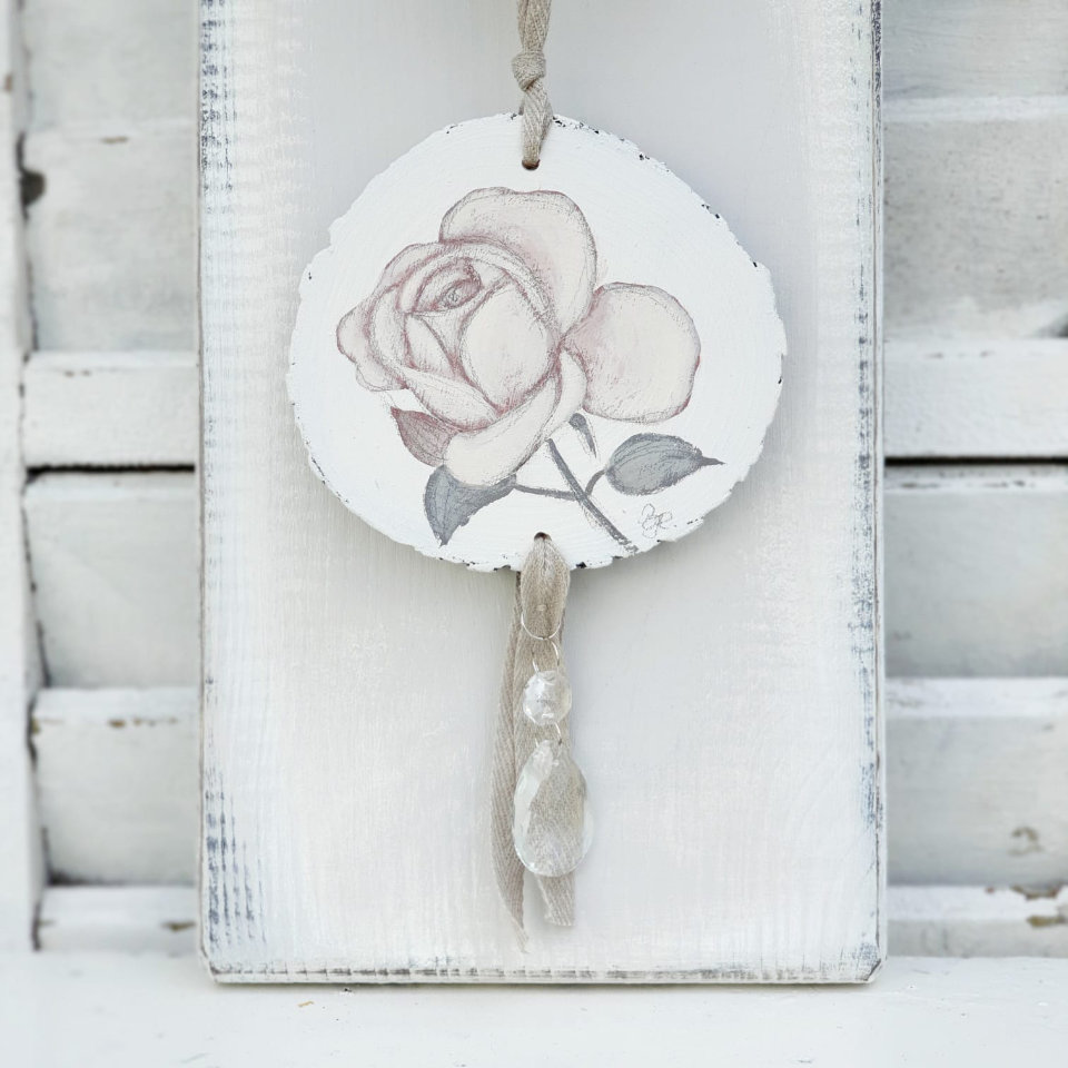 Handgemalte Anhänger auf Holzscheiben "Rosenträume".