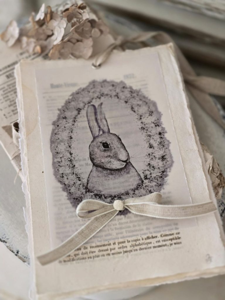 Printed on thick parchment paper, ancient book pages, and fine handmade paper, decorated with old linen ribbons and antique lace.