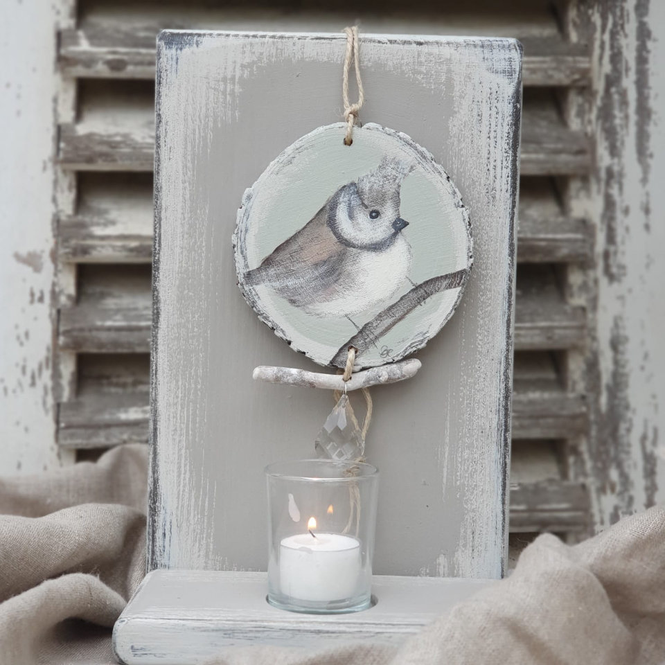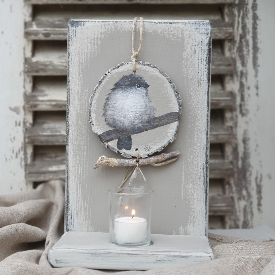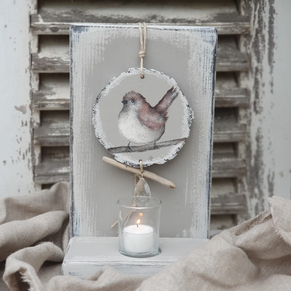 Handgemalte Anhänger auf Holzscheiben "Vögelchen".